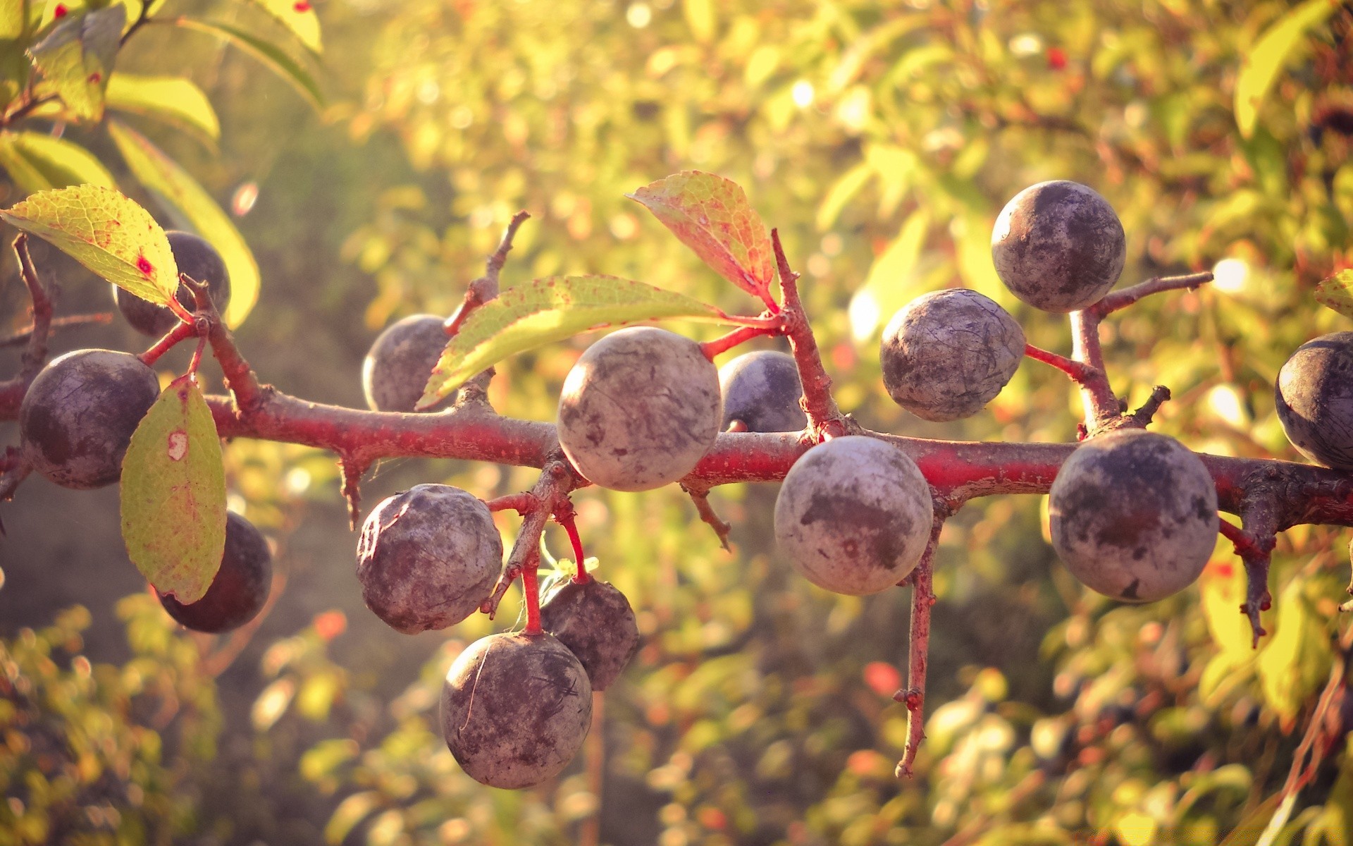 Ameixa suculenta em uma árvore paisagem de outono