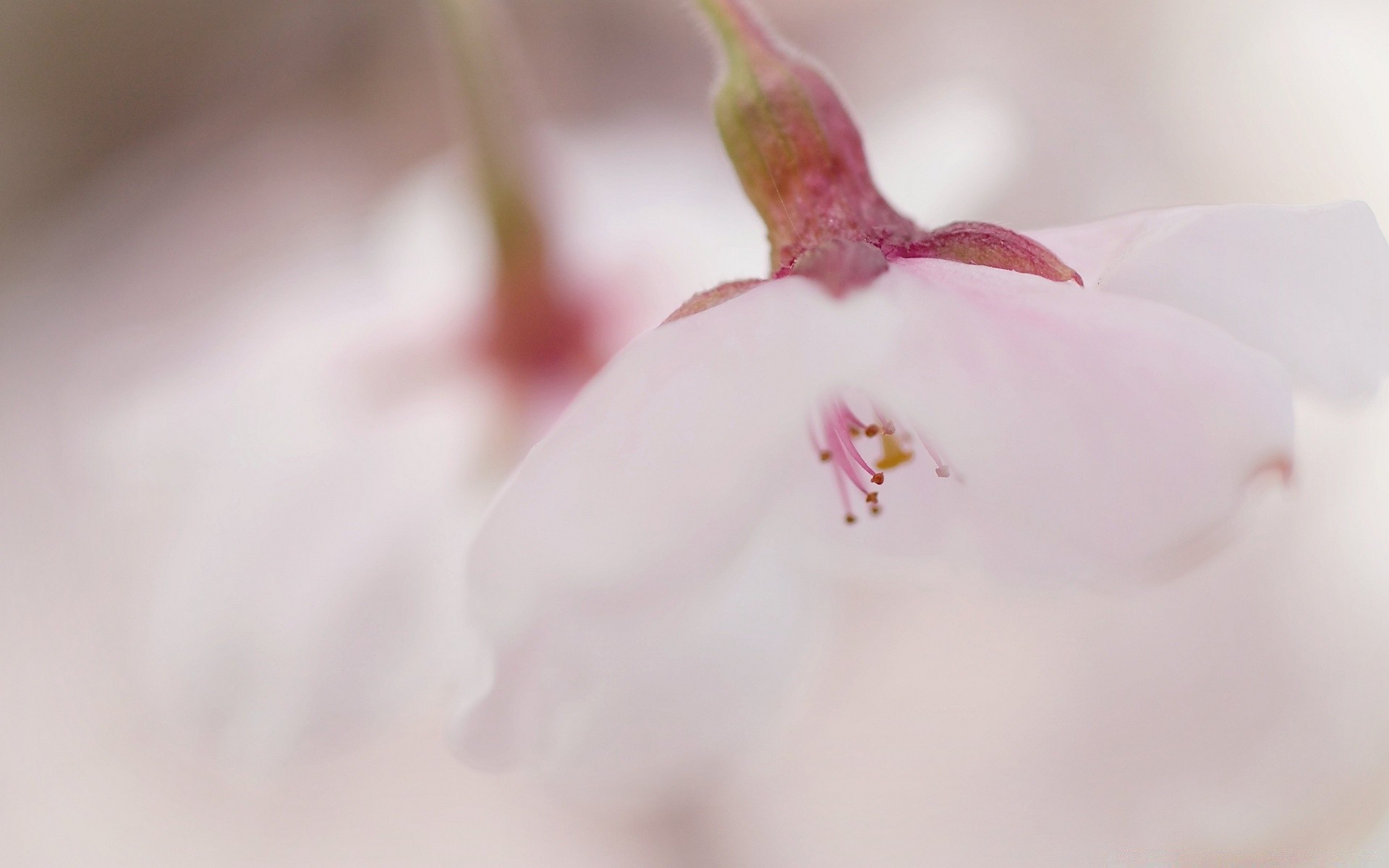 Fotografia macro. Flor. Estames e pistilos. Desfocagem