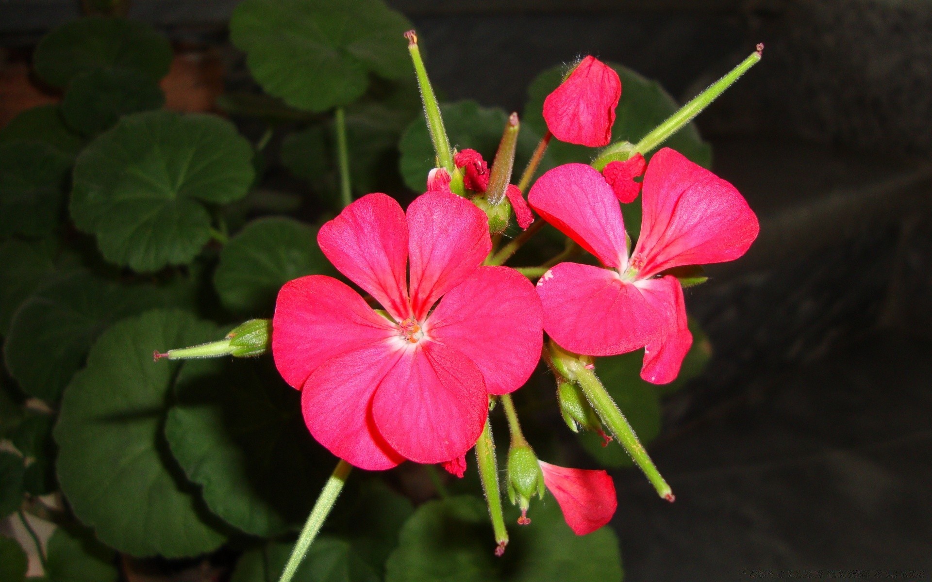 Flores com folhas cor-de-rosa contra um fundo verde escuro