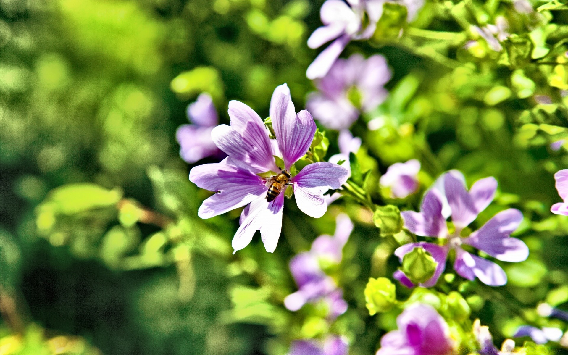 Flores multicoloridas salpicadas em um fundo verdeFlores multicoloridas salpicadas em um fundo verde