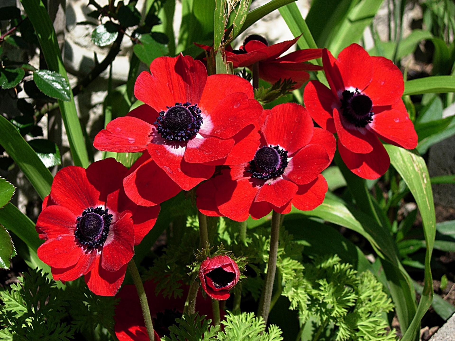 Flores bonitas vermelhas no verão em um canteiro de floresFlores bonitas vermelhas no verão em um canteiro de flores