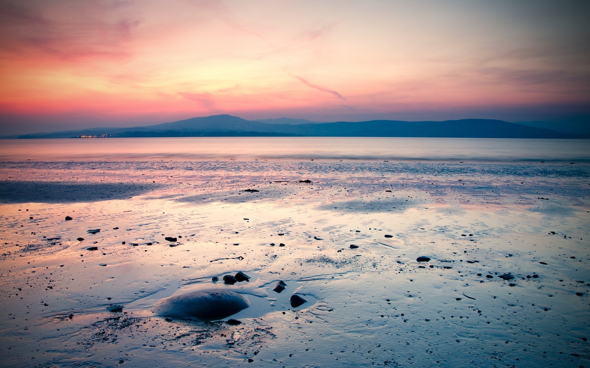 Brilho desfocado de luzes multicoloridas à beira-marBrilho desfocado de luzes multicoloridas à beira-mar