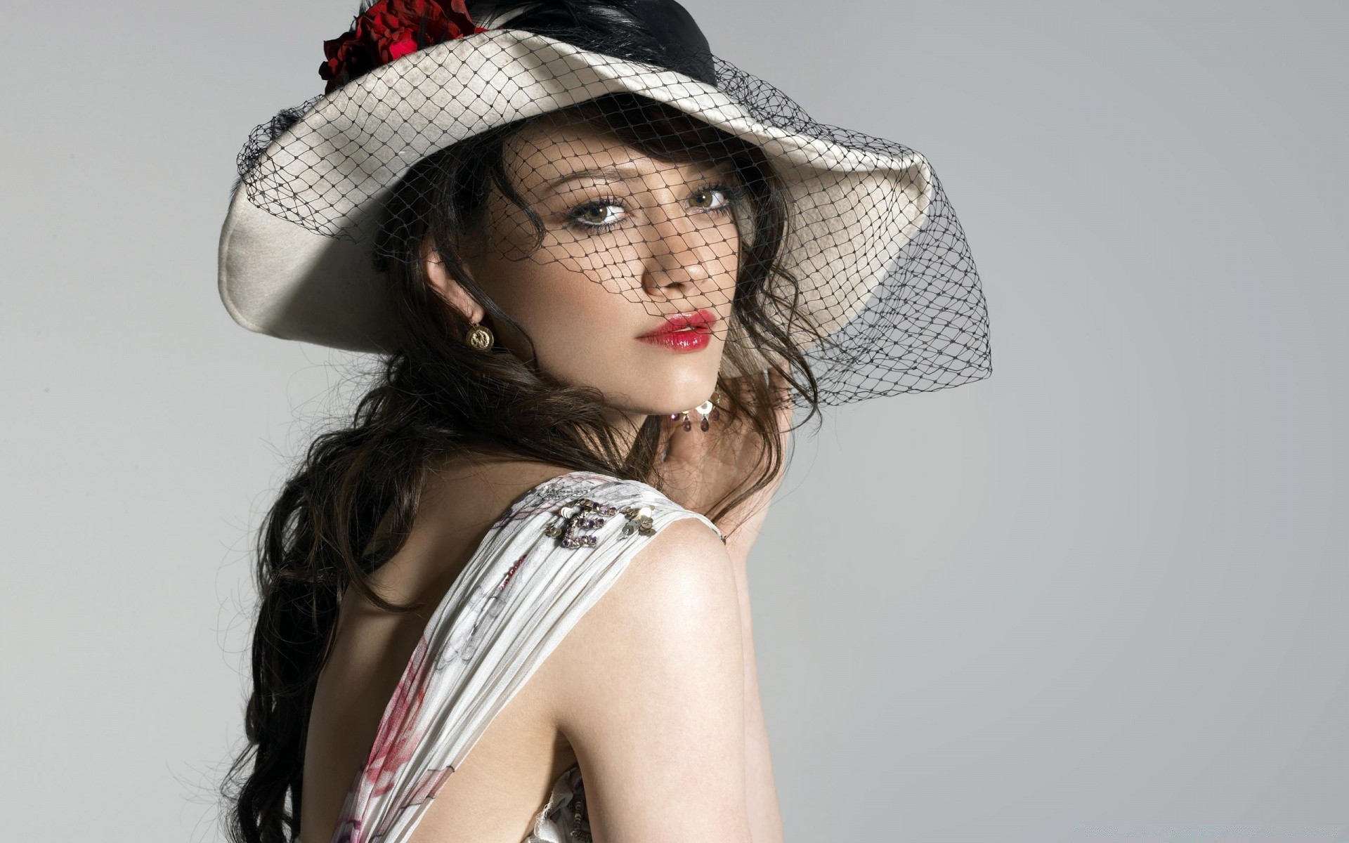 Linda mulher de cabelos castanhos com um olhar misterioso