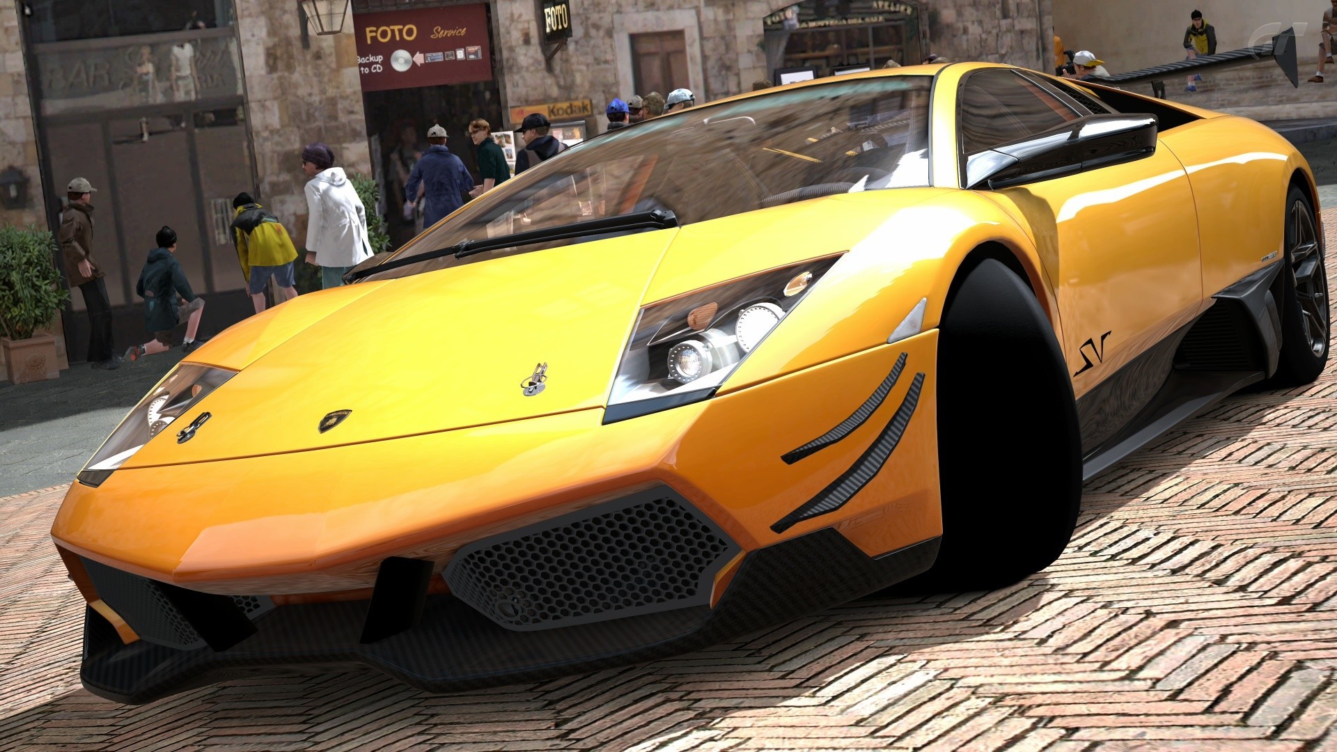 Carro esportivo amarelo na Praça