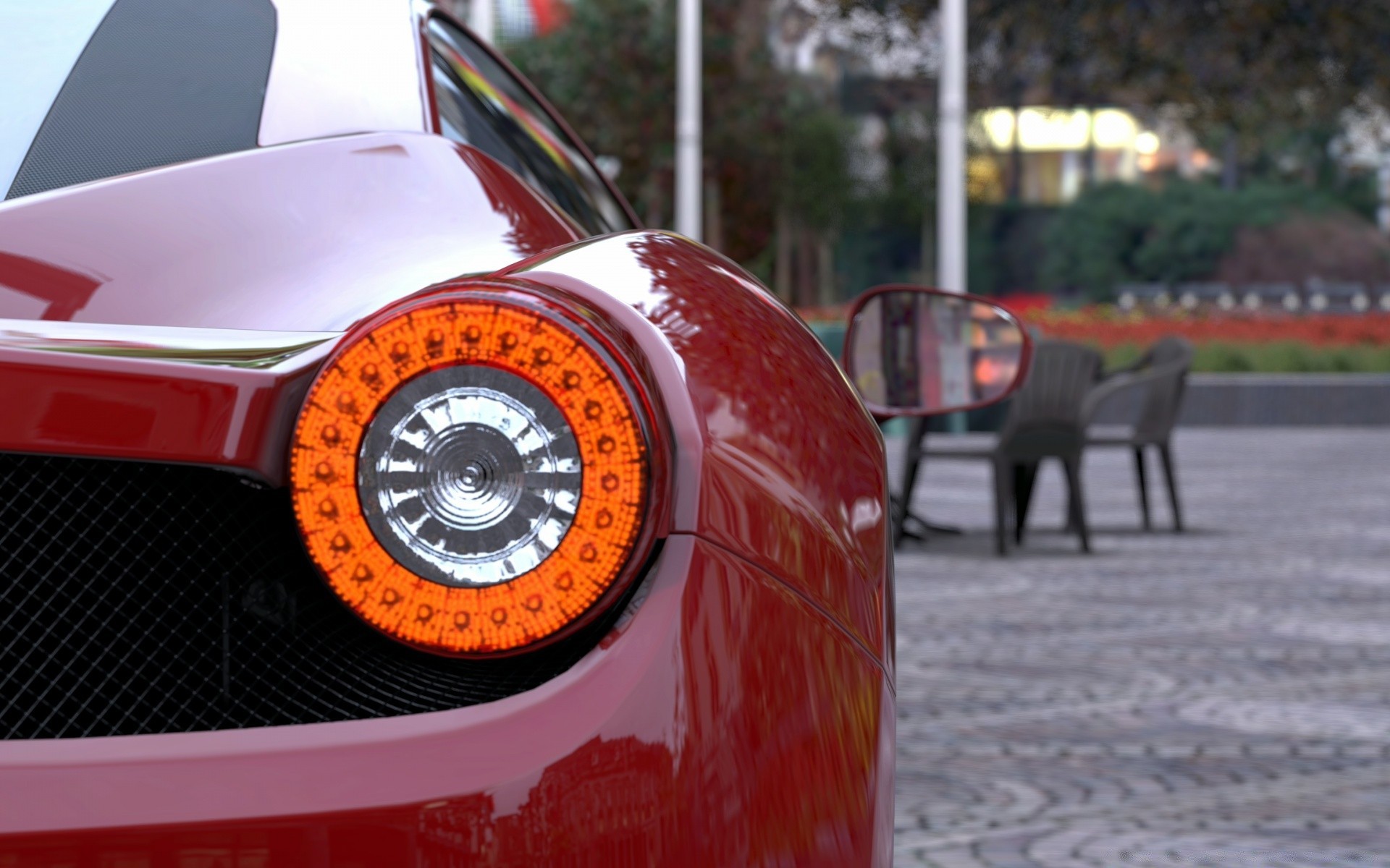 Carro esportivo amarelo na Praça