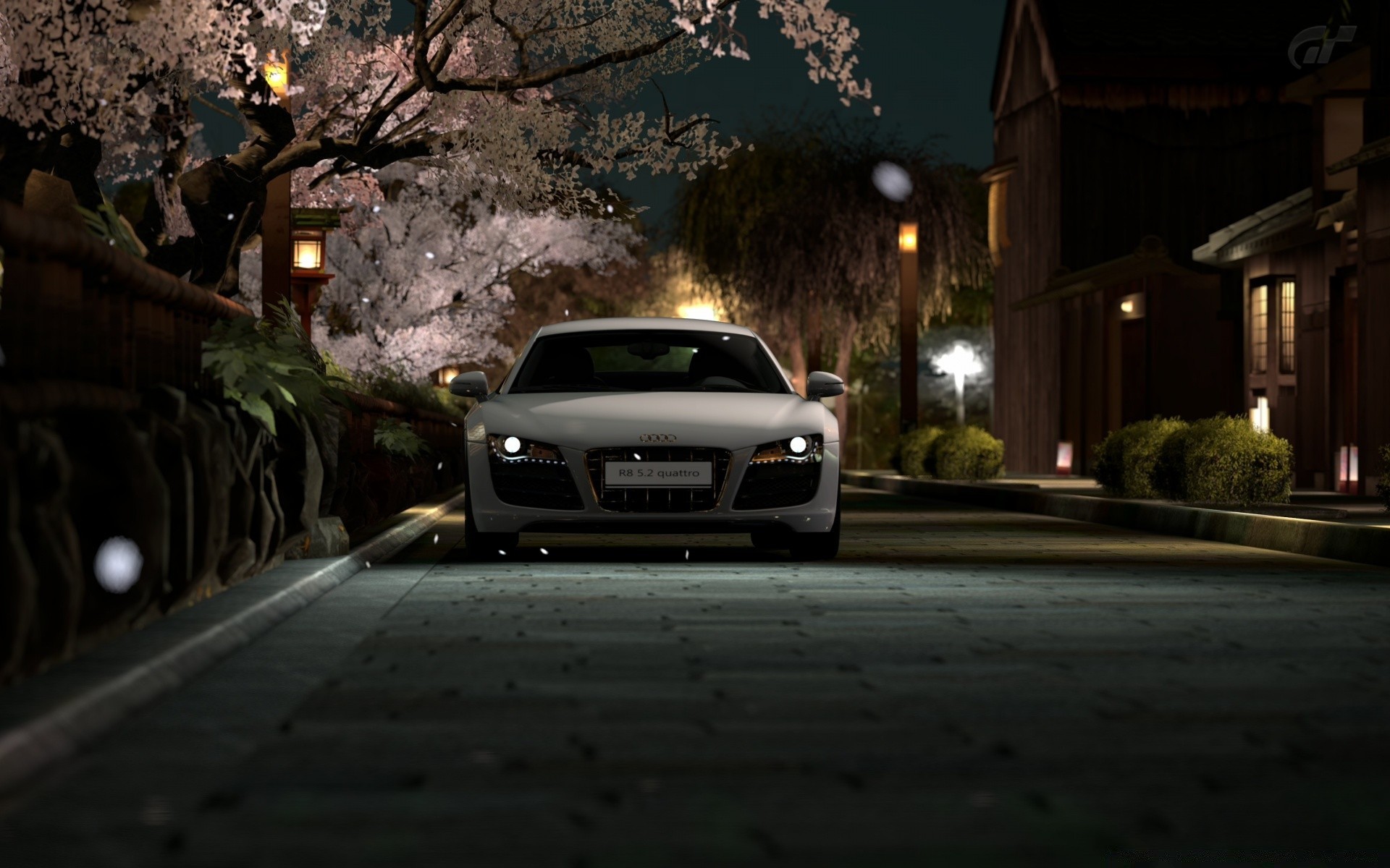 Carro branco na rua da noite na primavera