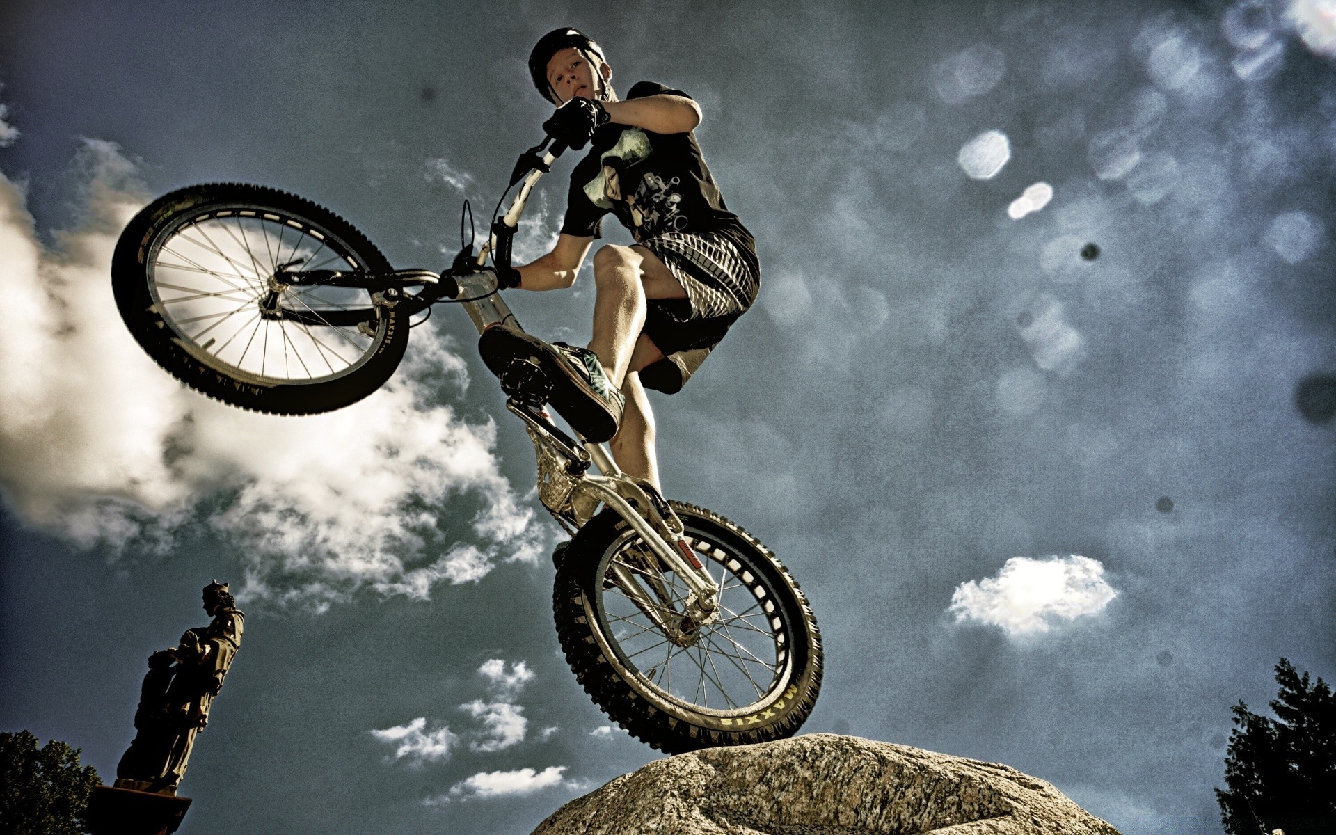 Motociclista de bicicleta fazendo esportes