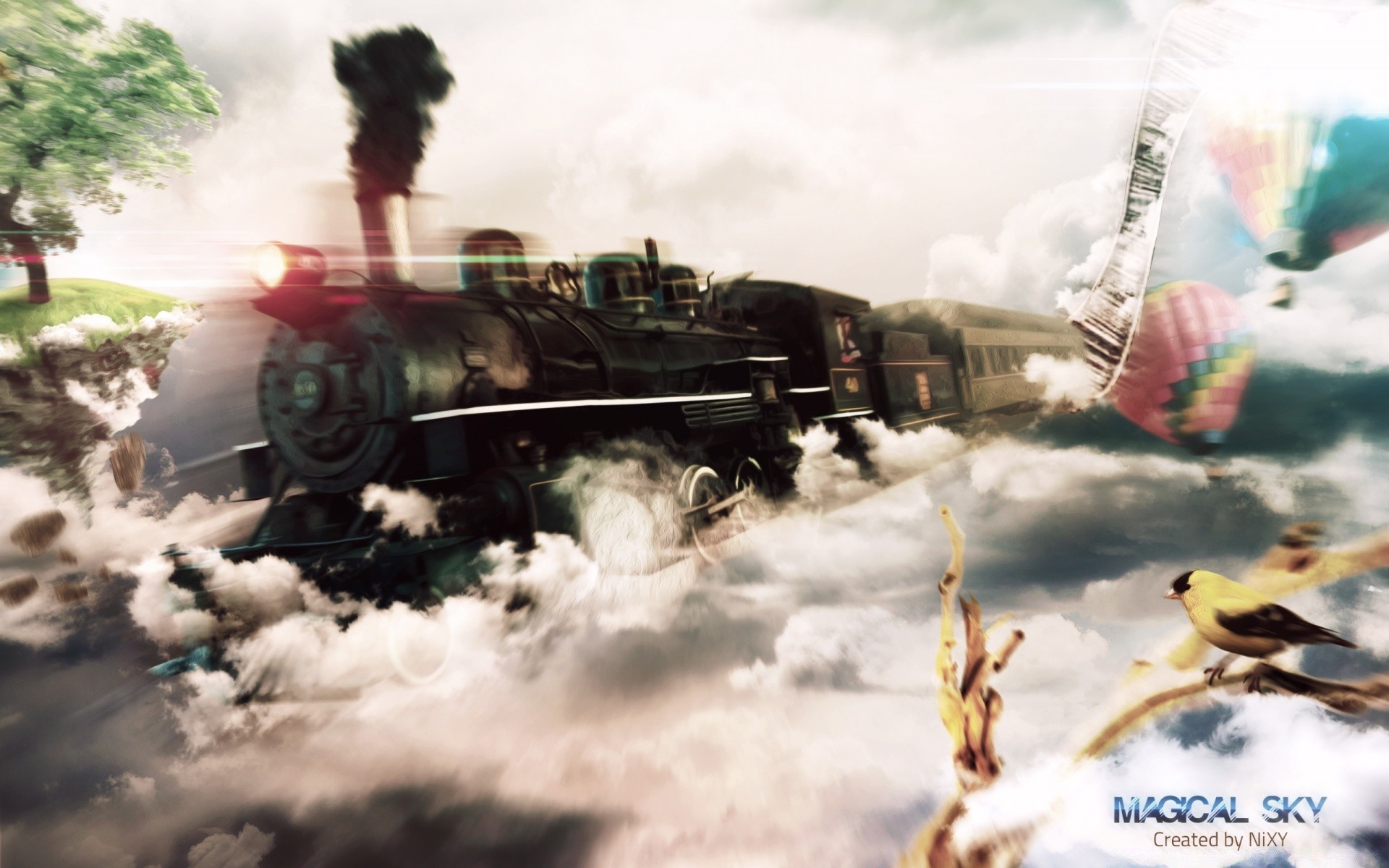 Um sistema de transporte chamado locomotiva a vapor, batendo rodas ao ar livre