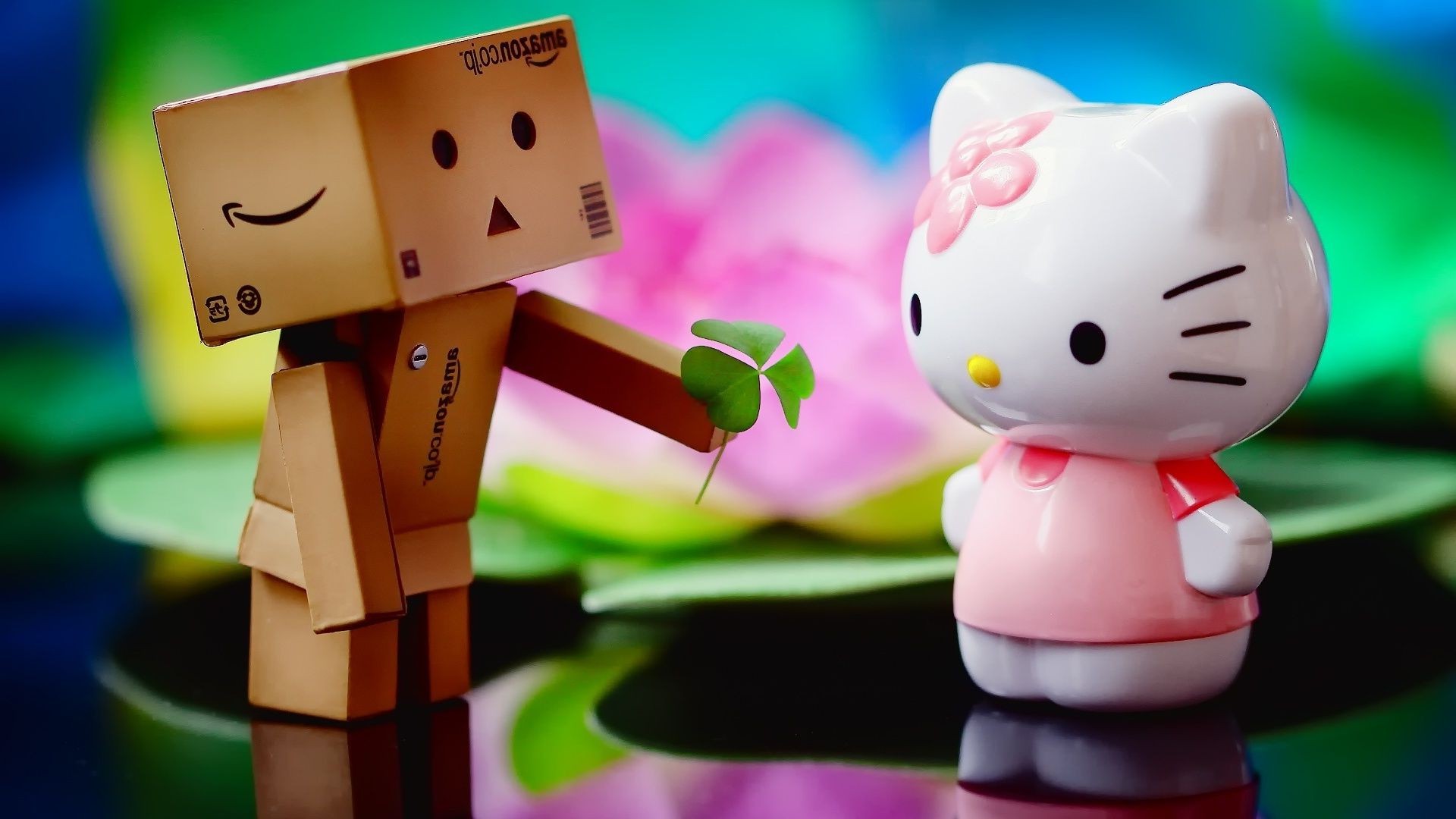 Um brinquedo de caixa dá um trevo a outro brinquedo