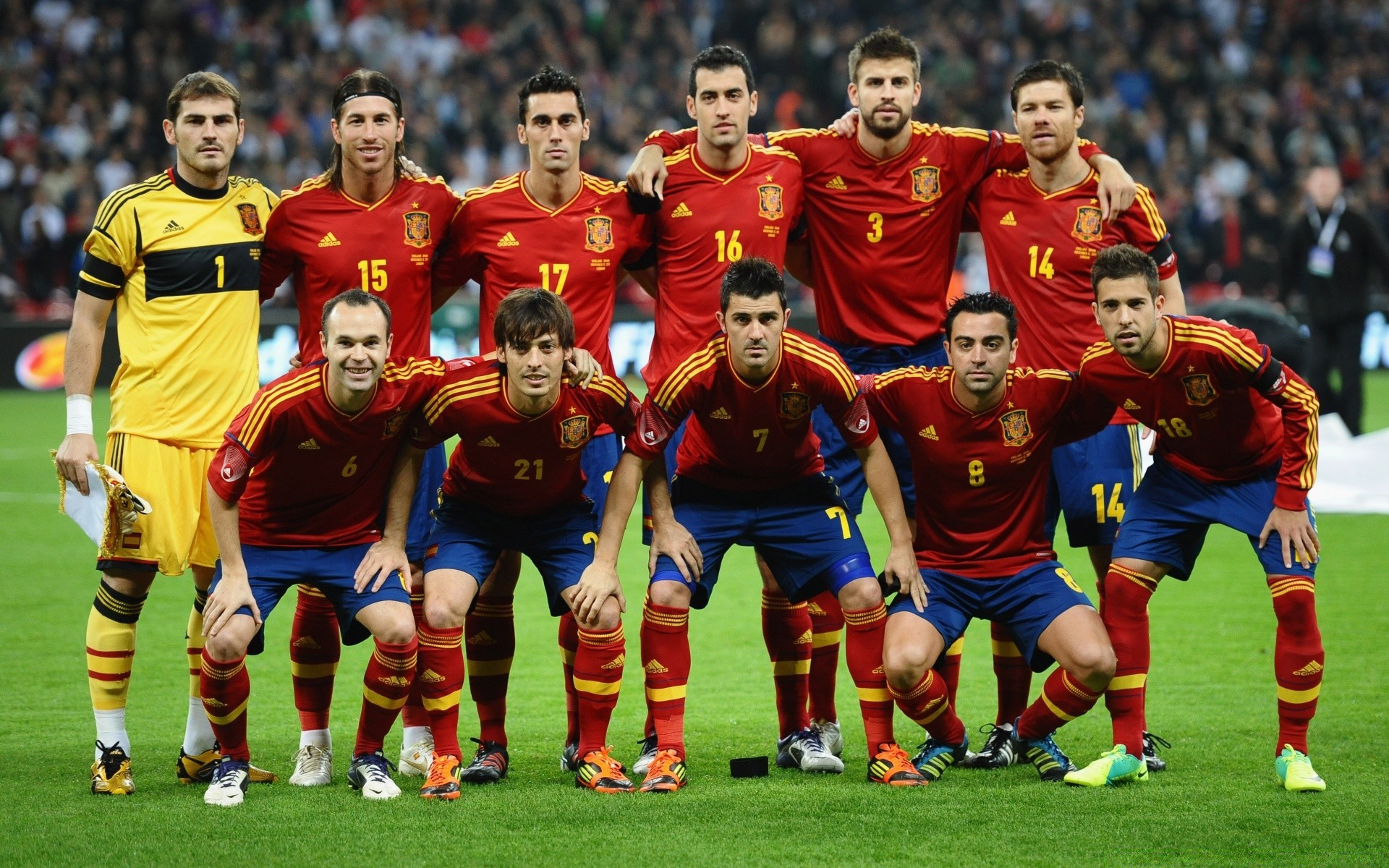 Equipe antes do início do jogo de futebol
