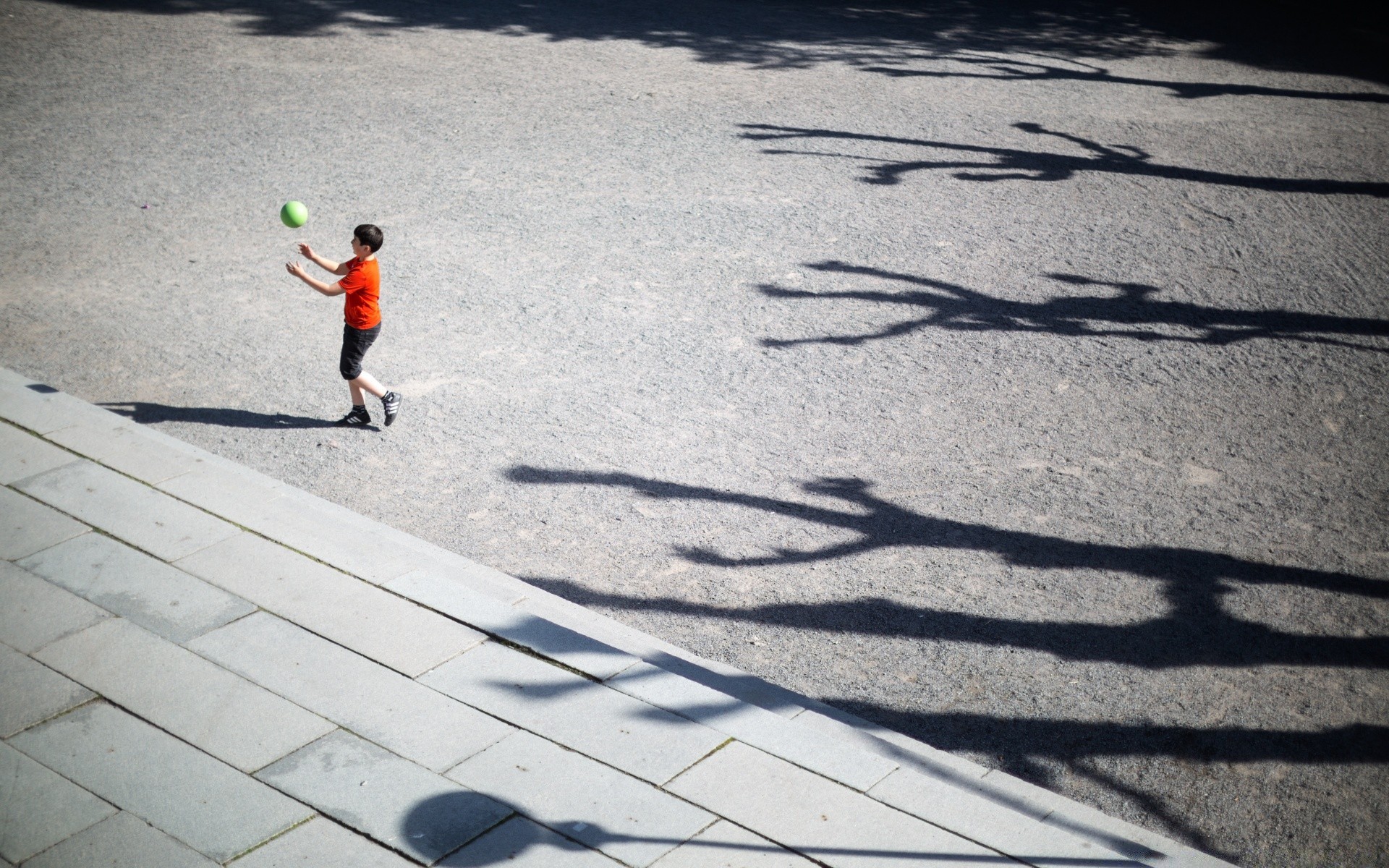 No tratoire, o menino joga a bola disse para jogar na tigela