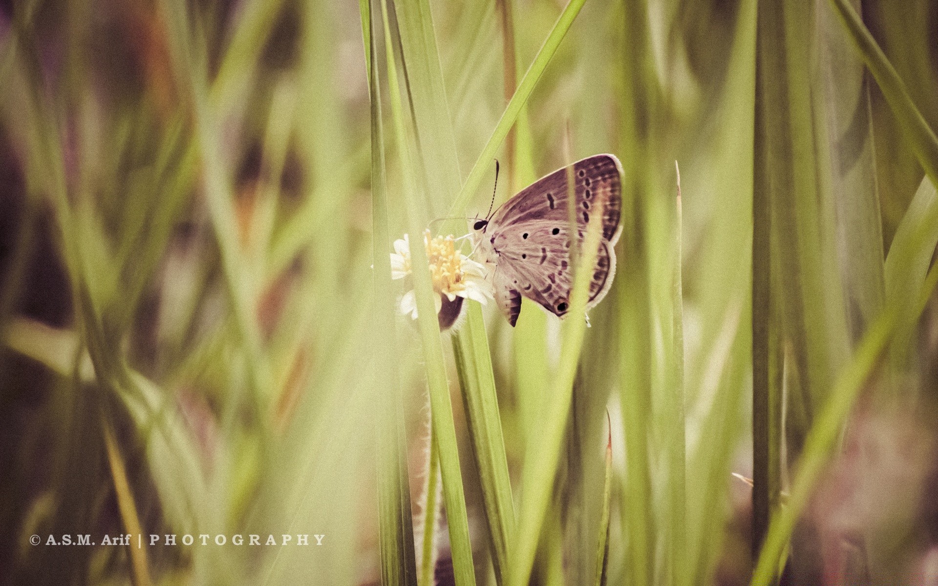 Folha de grama verde borboleta cinza