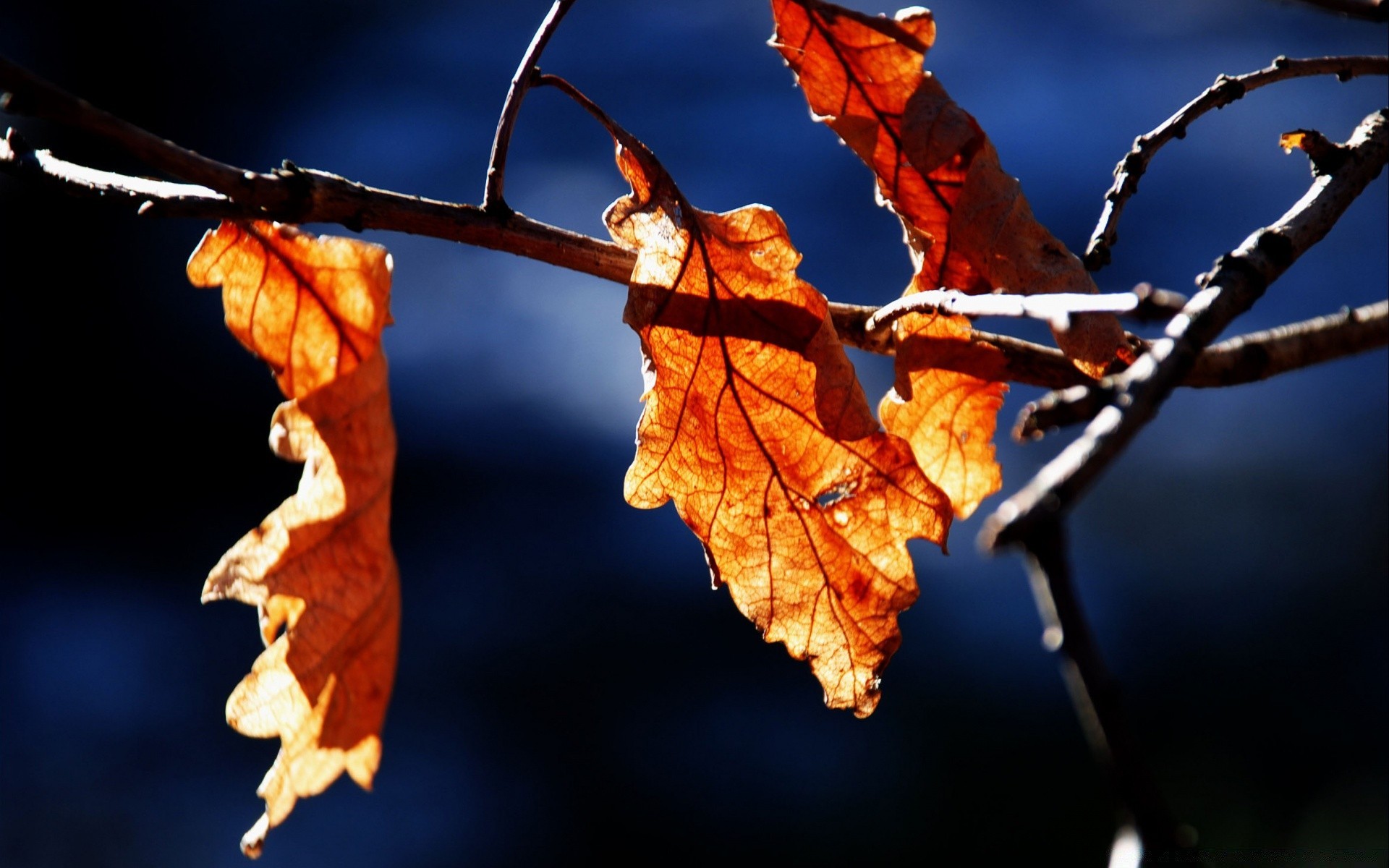 Folhas amareladas em um fundo escuro