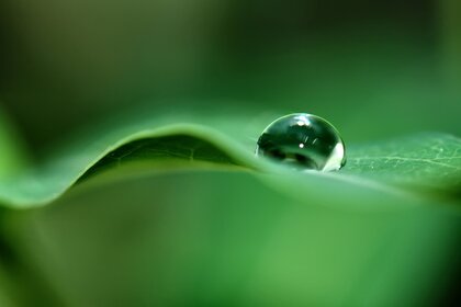Em uma folha brilhante uma gota de orvalho