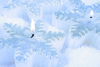 Árvores brancas cobertas de neve contra o céu noturnoÁrvores brancas cobertas de neve contra o céu noturno