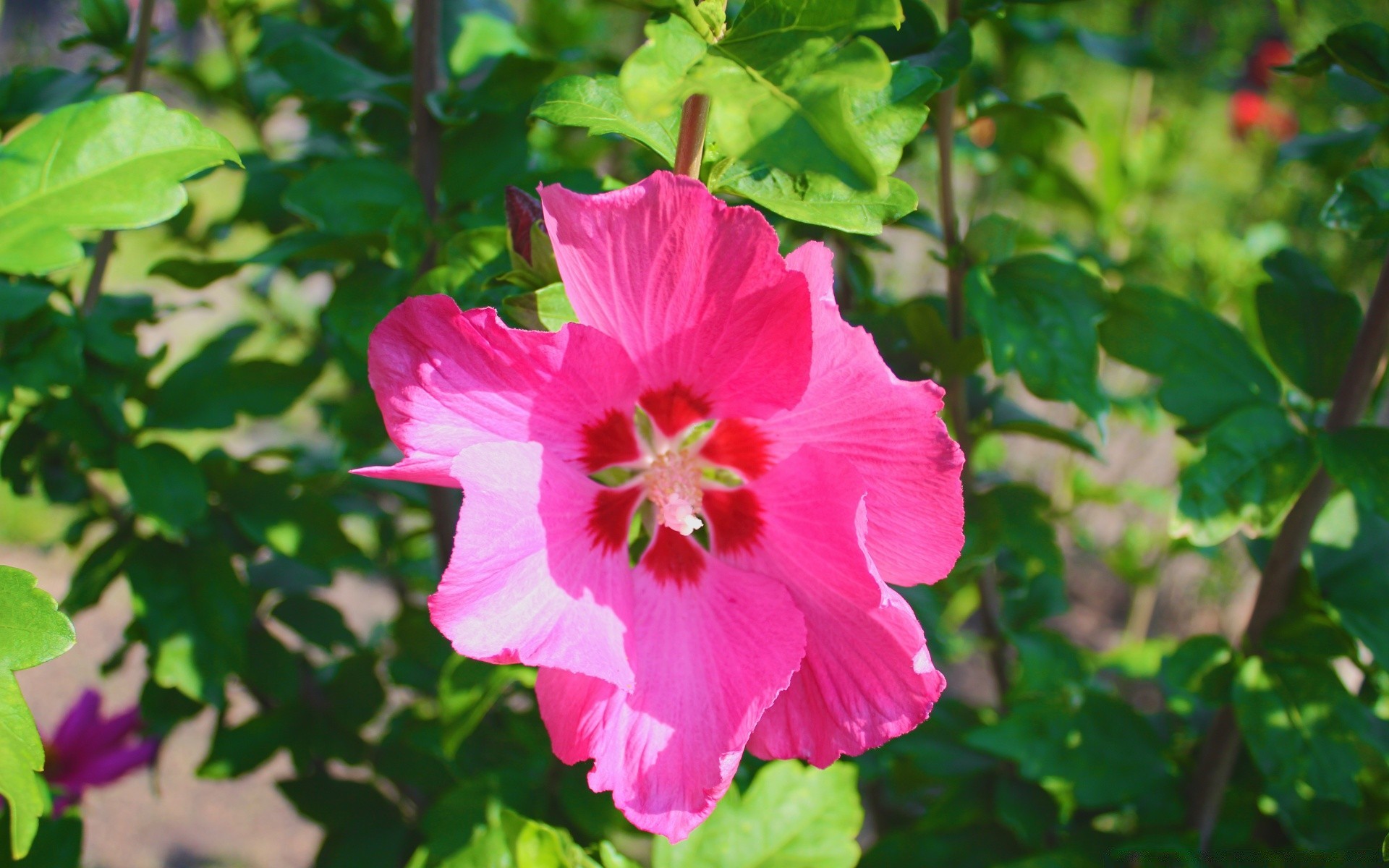 Flor rosa brilhante em um fundo verde