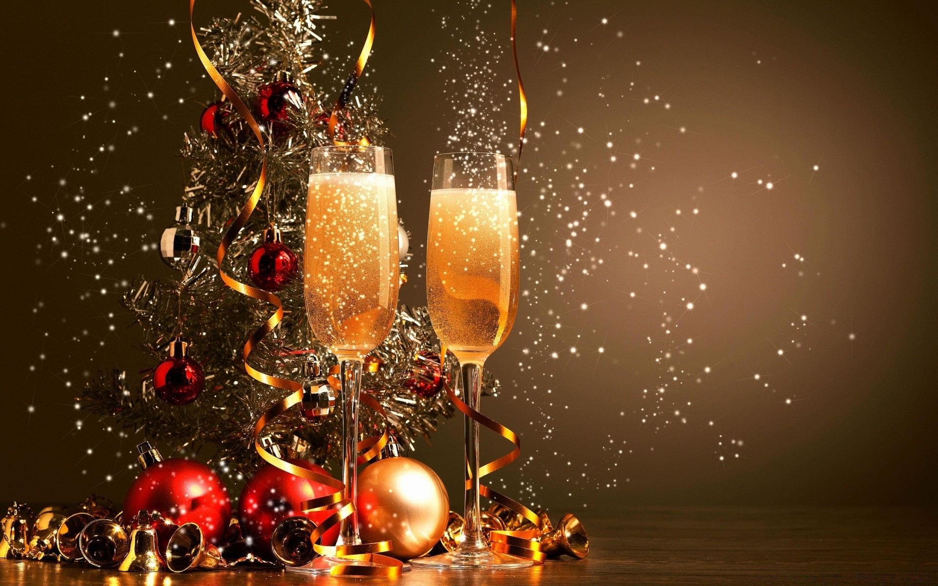 Taças de champanhe, lantejoulas e brinquedos