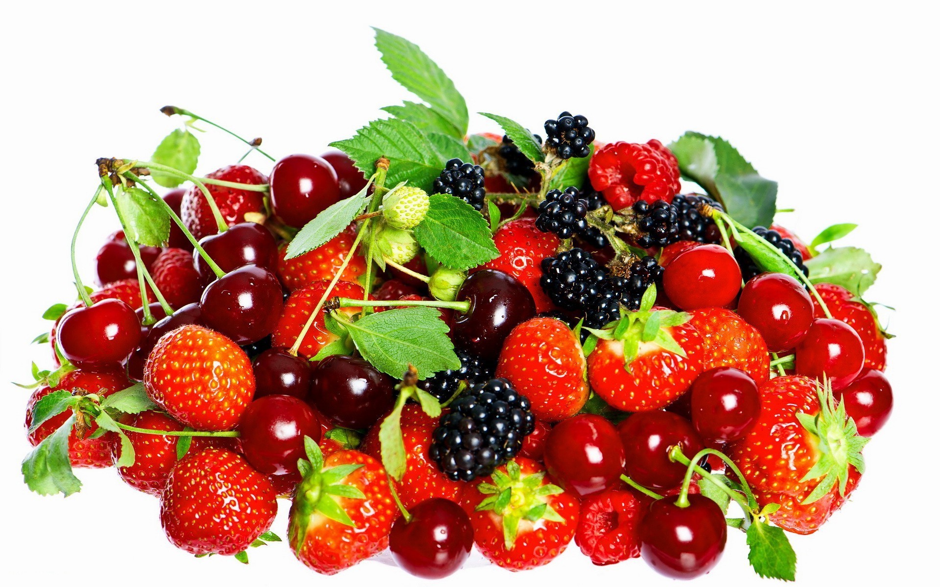 Um monte de bagas maduras em um fundo branco