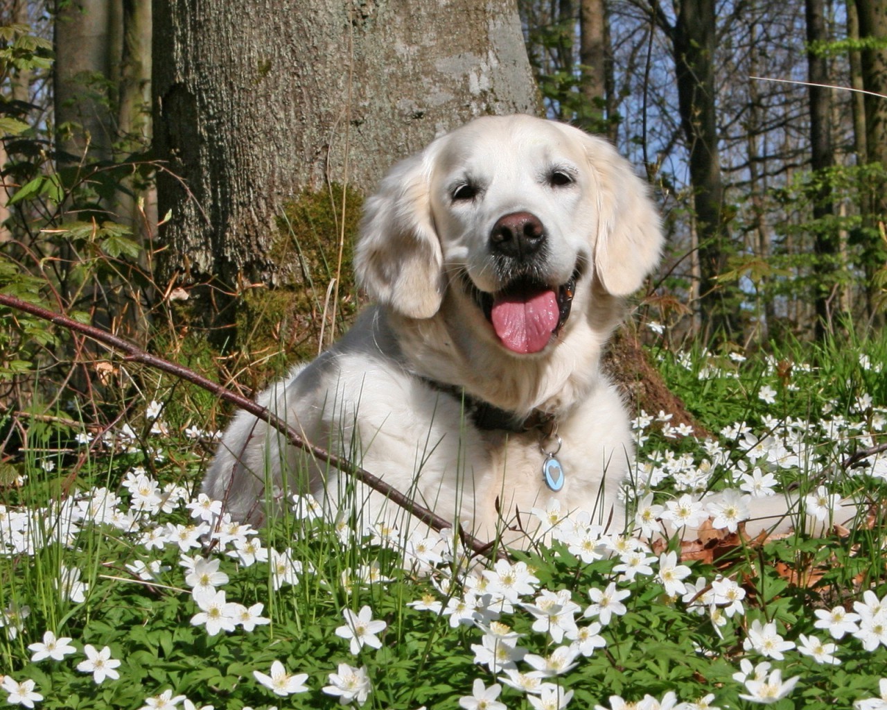 Labrador bonito branco na floresta