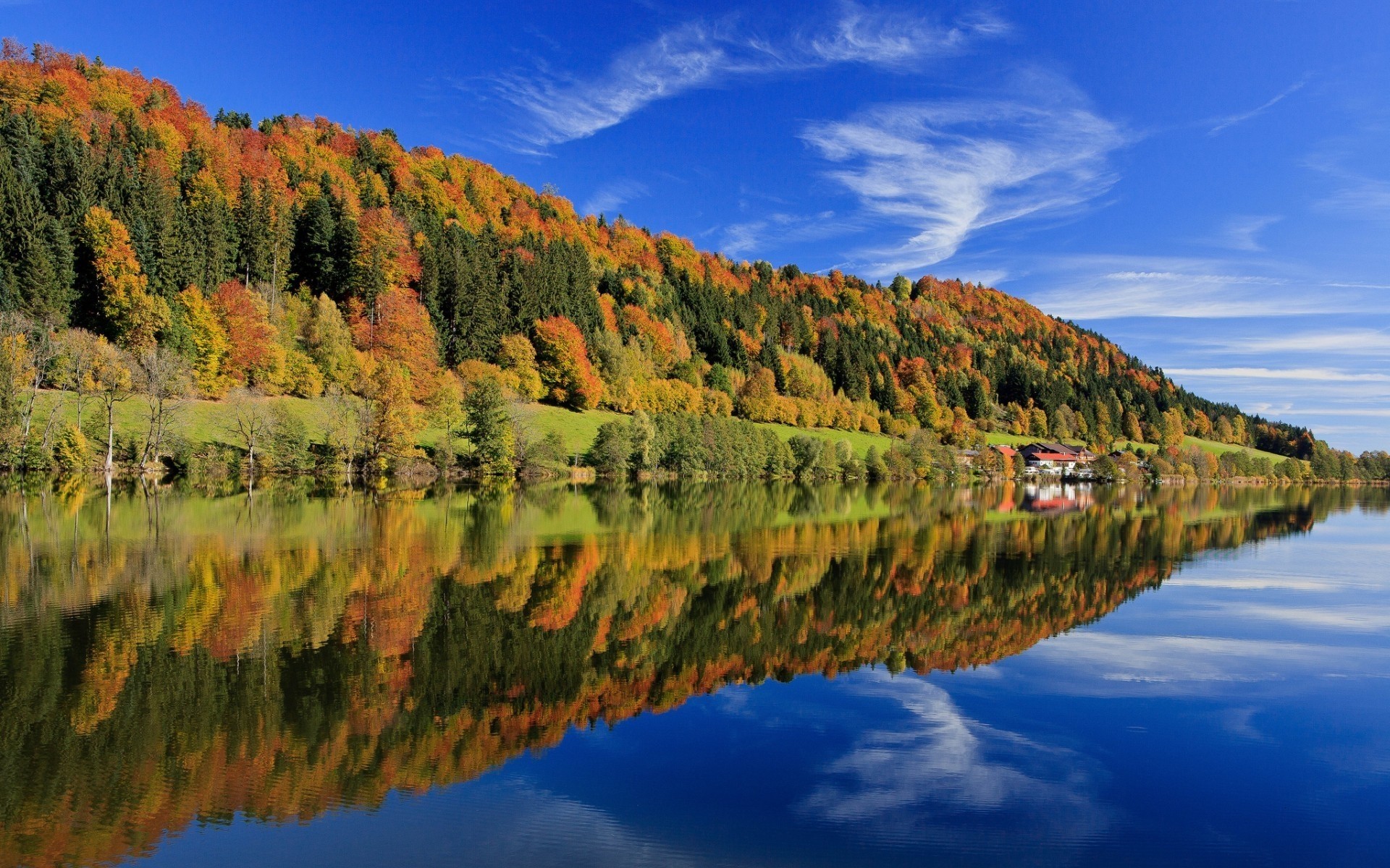 Paisagem. Céu azul. Nuvens no céu. Árvore verde. Grama verde