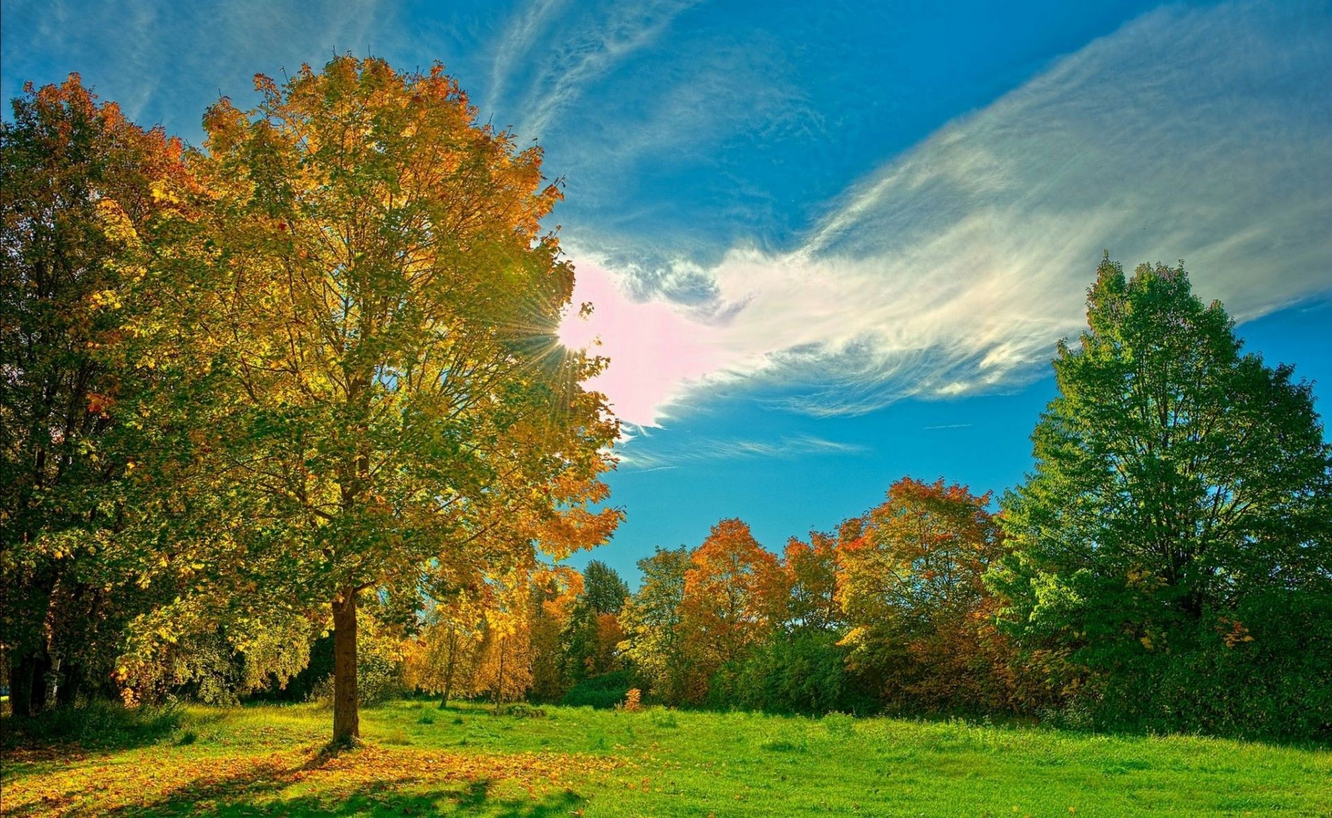 Edifícios antigos com colunas céu azul Árvores verdes estrada andando pessoas