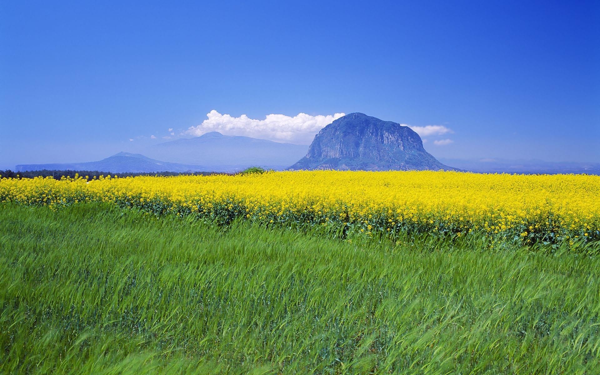 Céu azul com nuvens brancas acima da grama verde brilhante