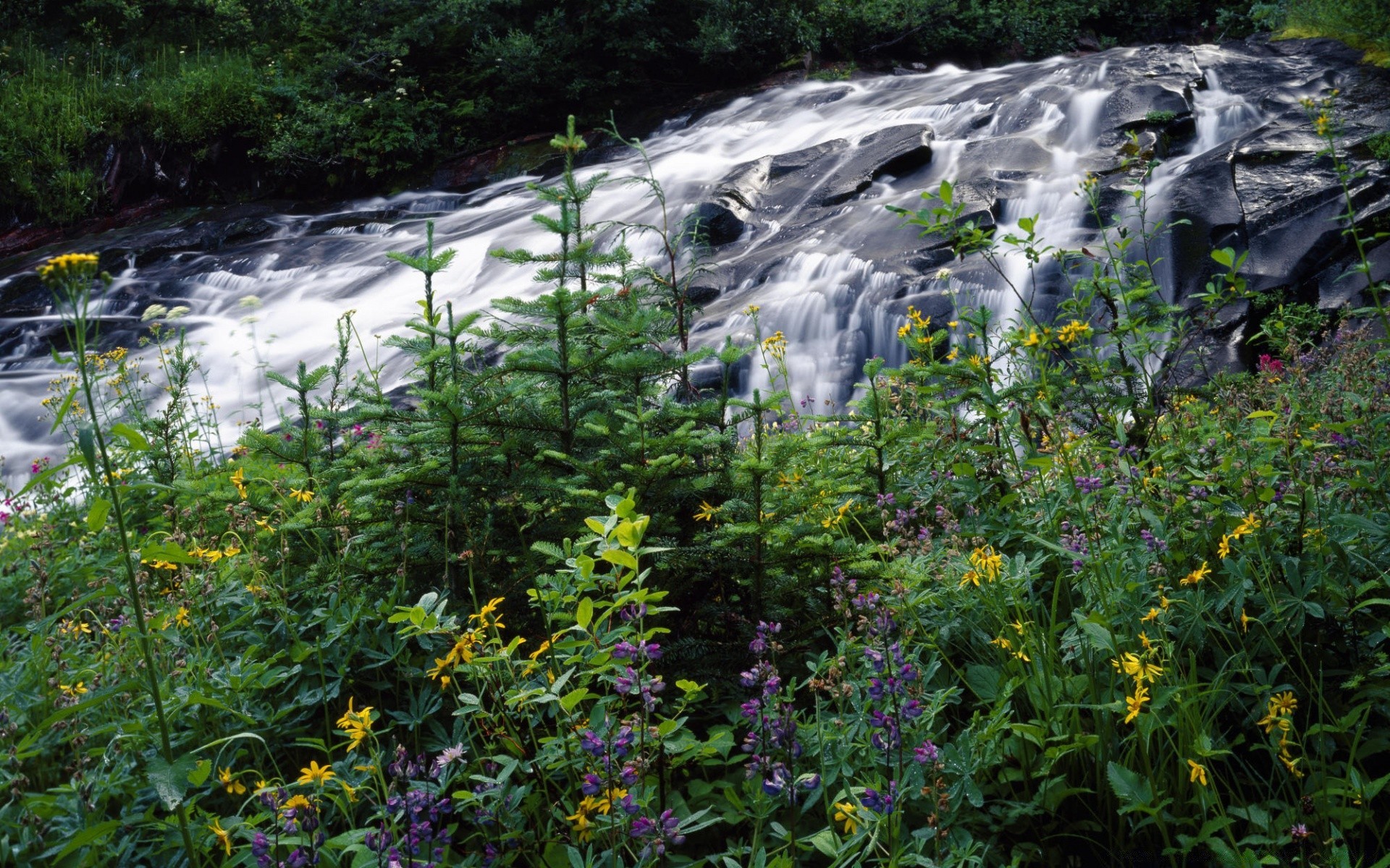 Cachoeira de verão perto de plantas