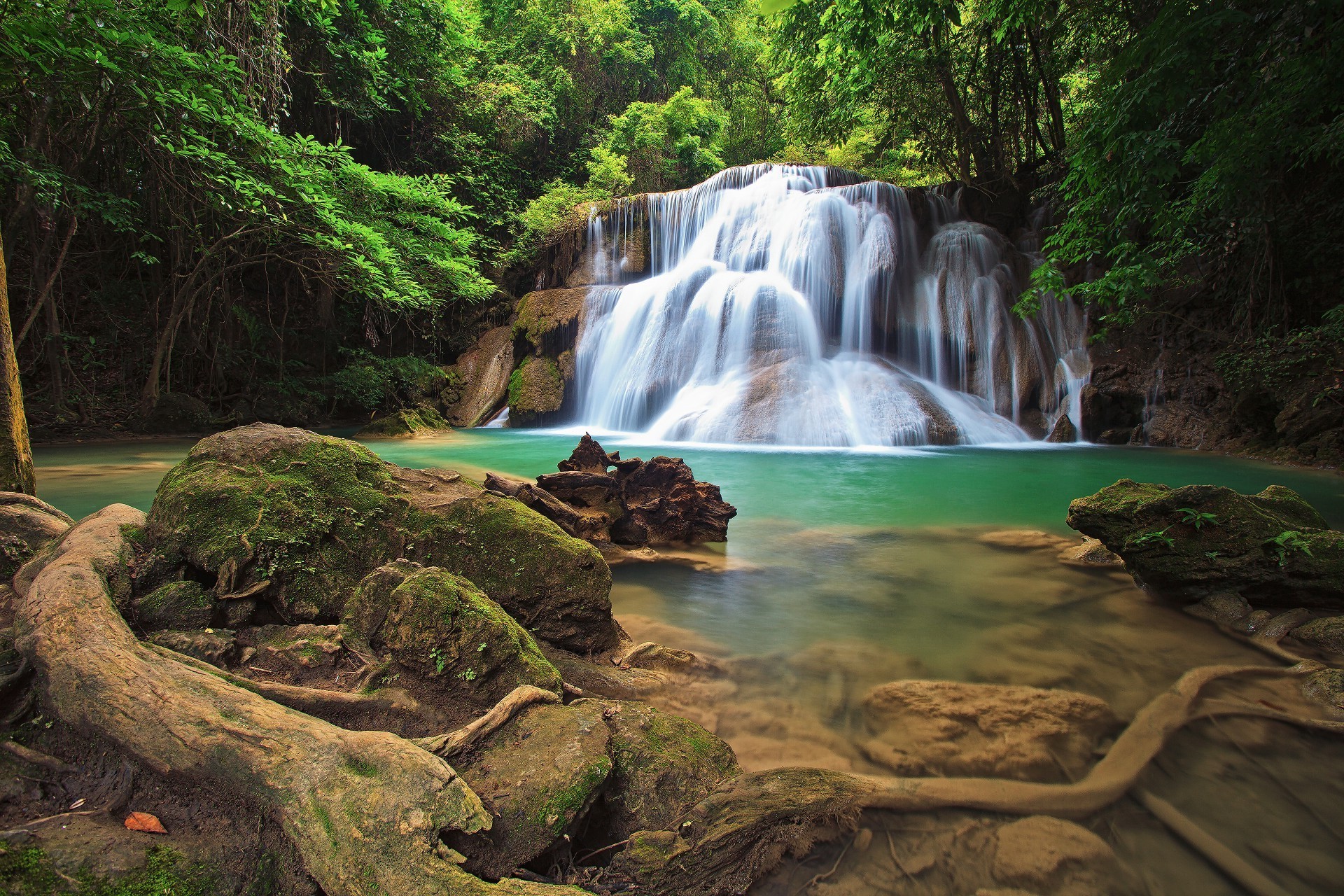 Uma pequena cachoeira de montanha em algum lugar na selva