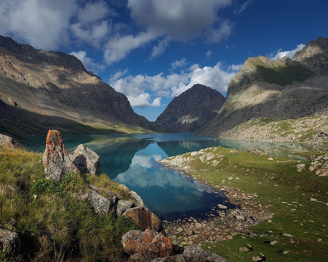 Lago limpo entre as montanhas poderosas