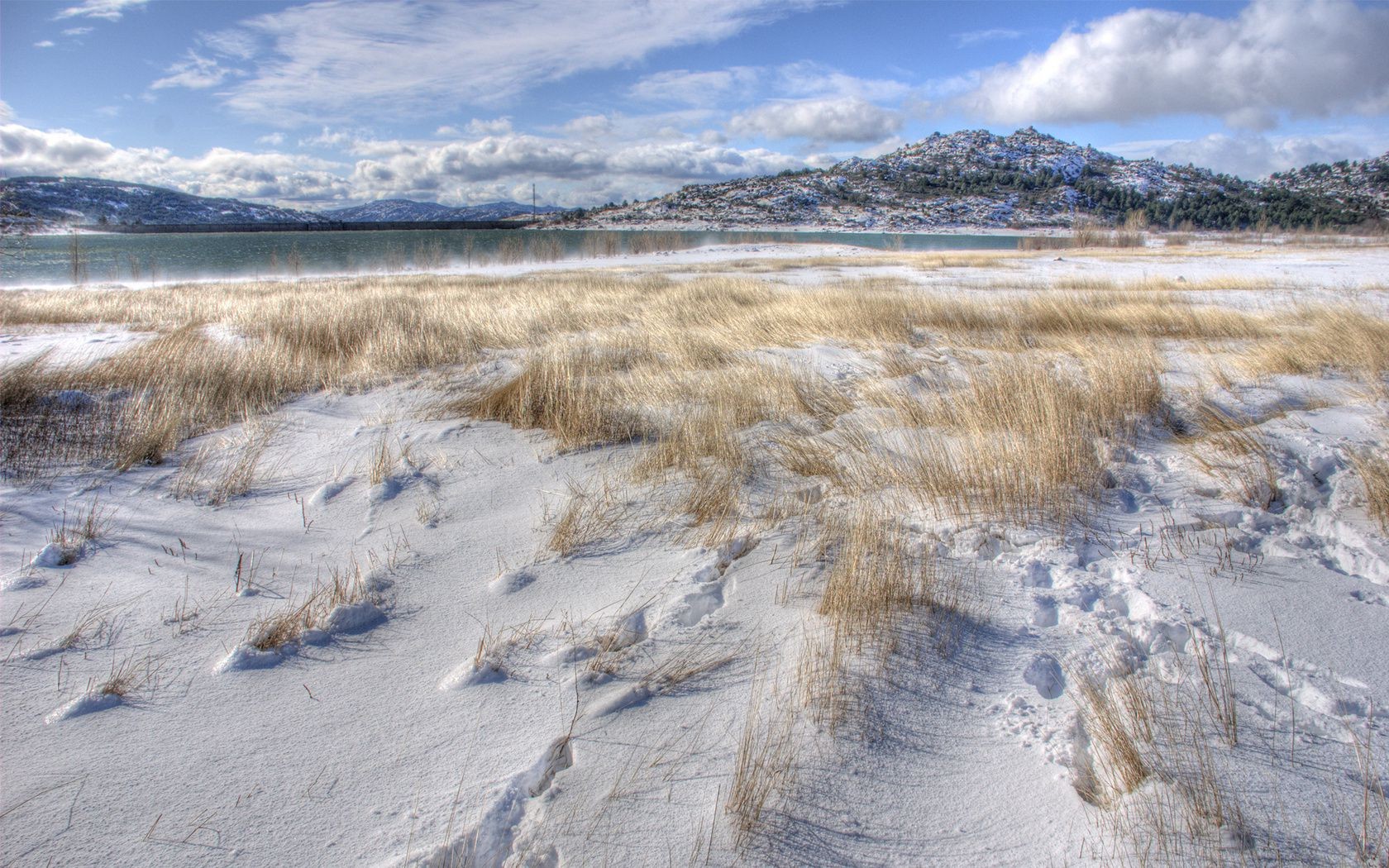 No campo de Inverno e nas montanhas, a neve brilha ao sol