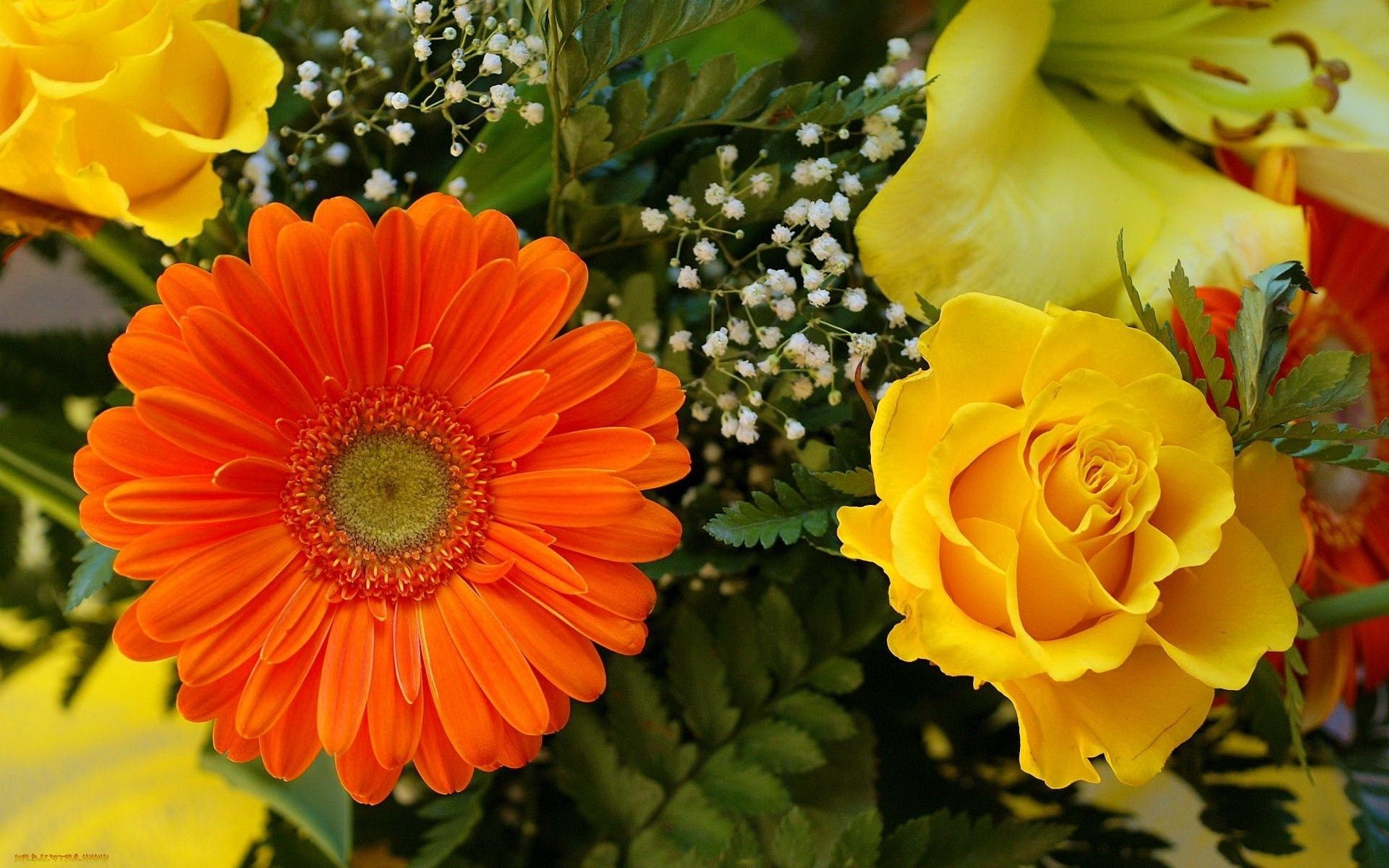 Lindo buquê de flores de rosas amarelas e rosa em pacote