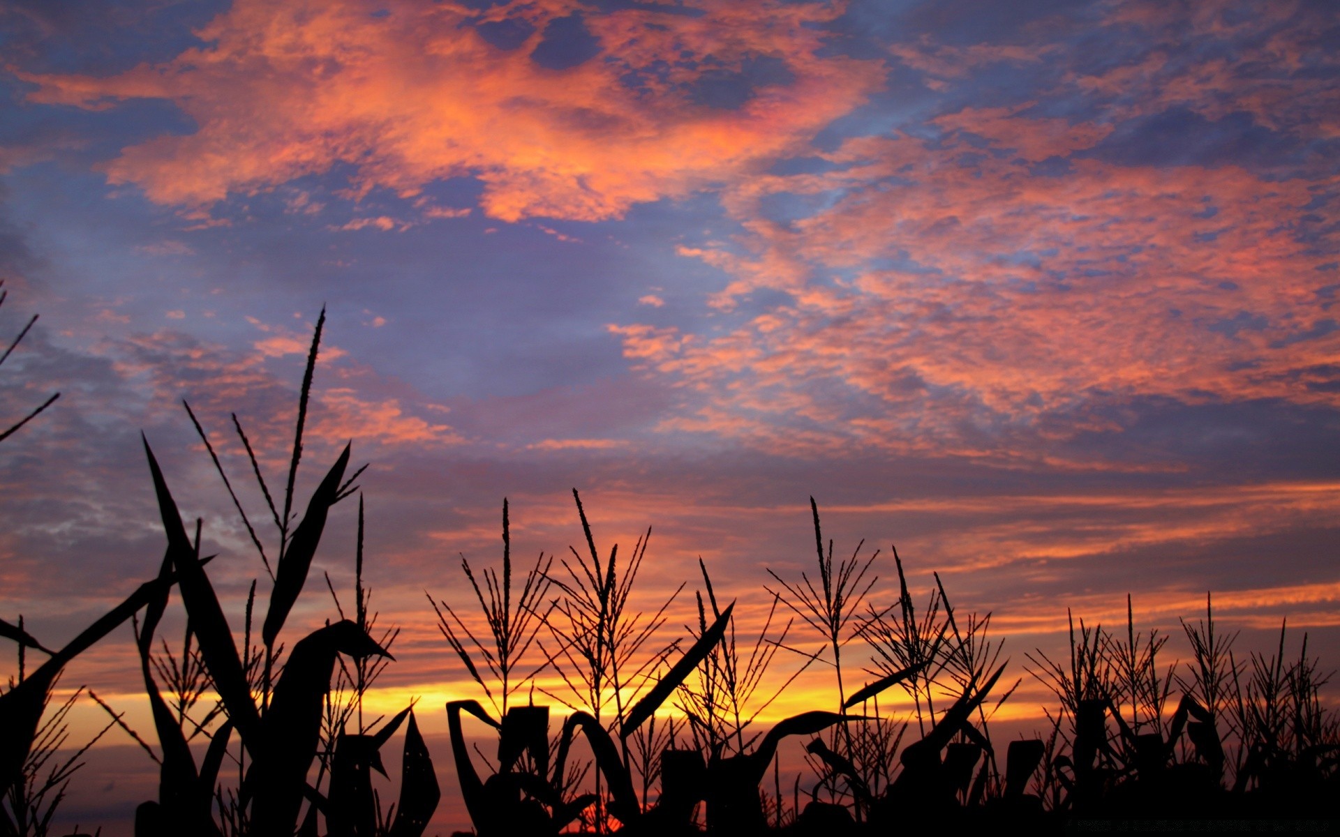 Campo de milho no fundo do pôr do sol