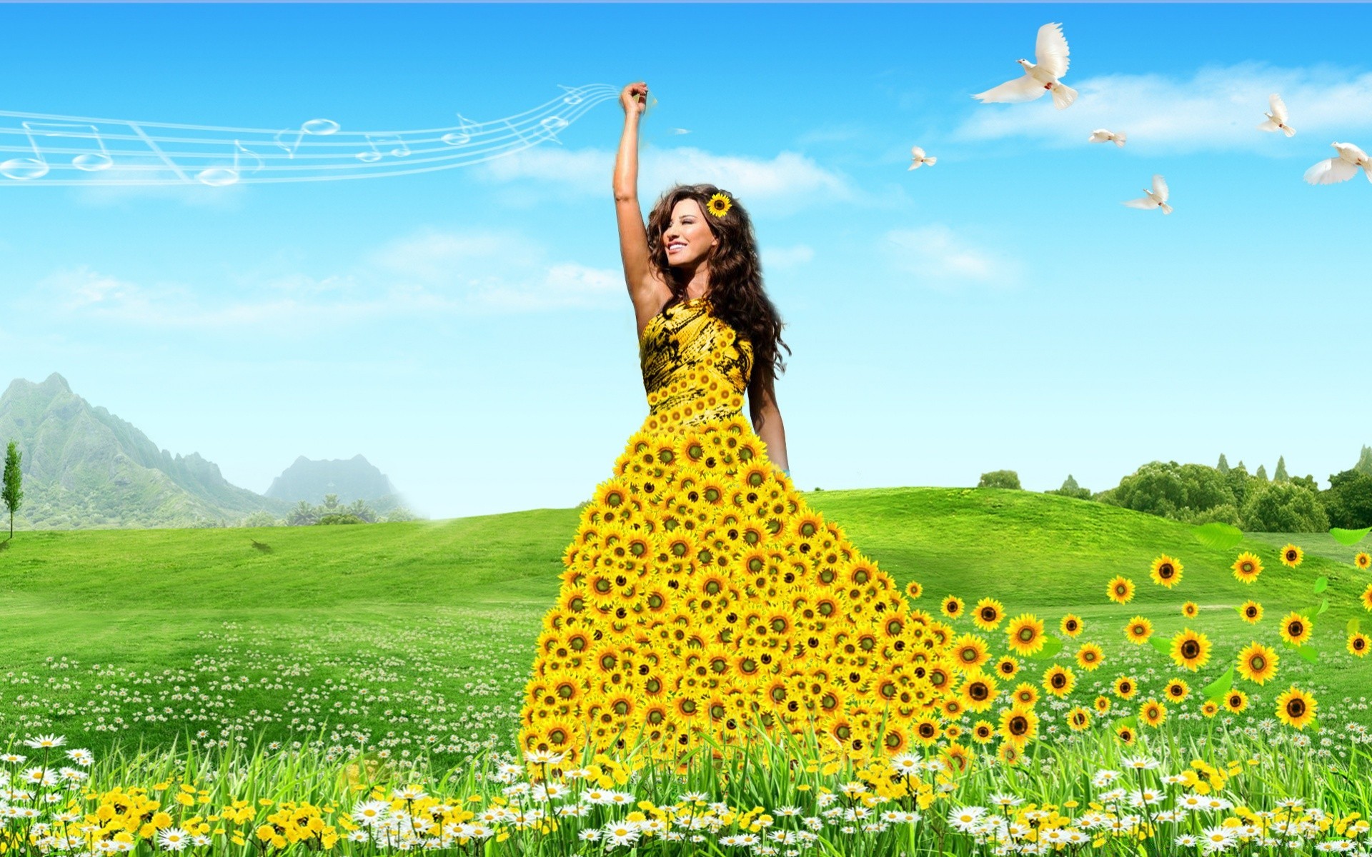 Campo flores elefante presas tronco orelhas amarelo névoa