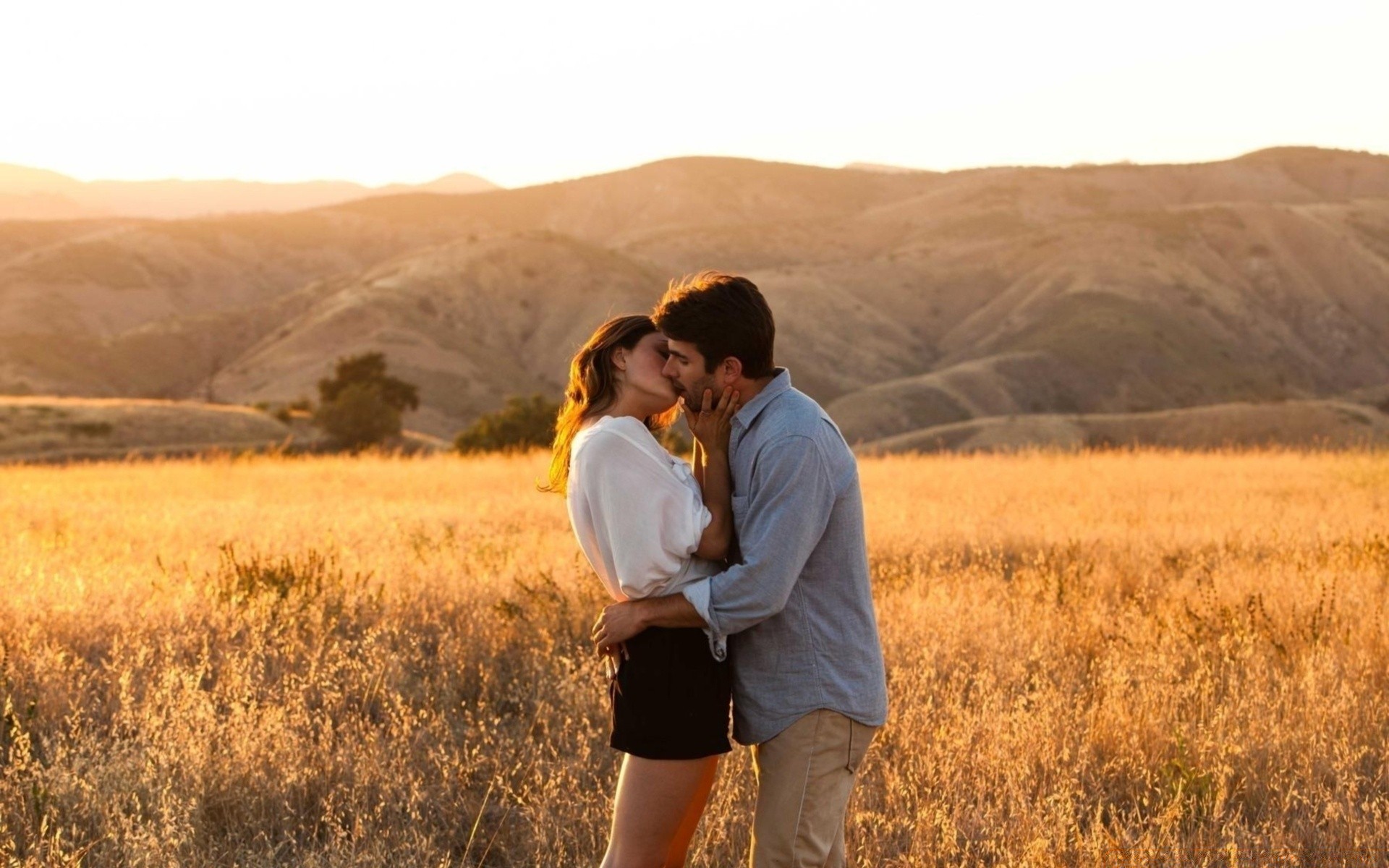 Beleza de cabelos negros em um vestido vermelho no campo