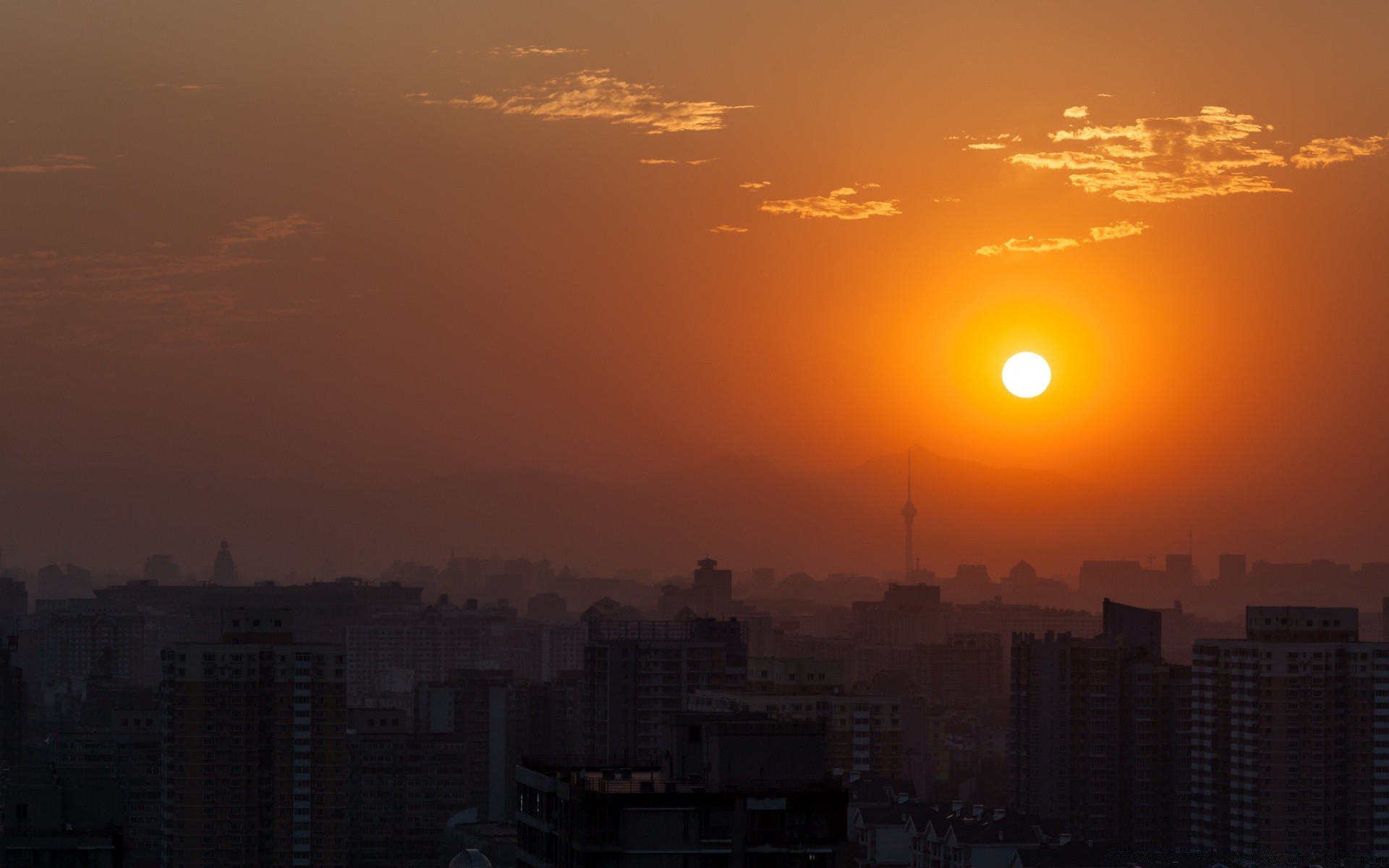 Paisagem do pôr do sol durante uma viagem para outras cidades