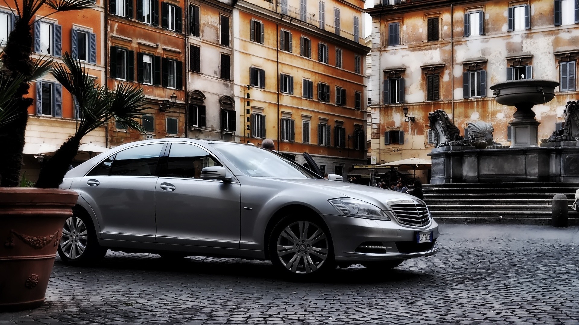 Carro no pátio de uma casa antiga