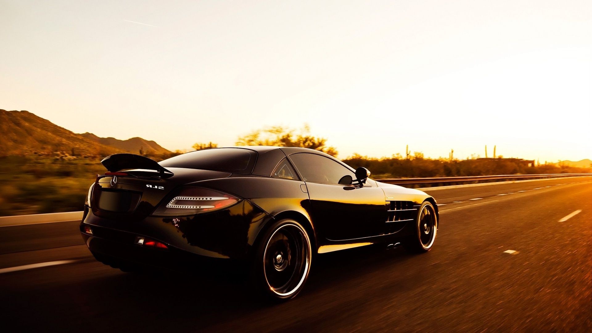 Carro preto emoldurado a vermelho na estrada contra o céu azul