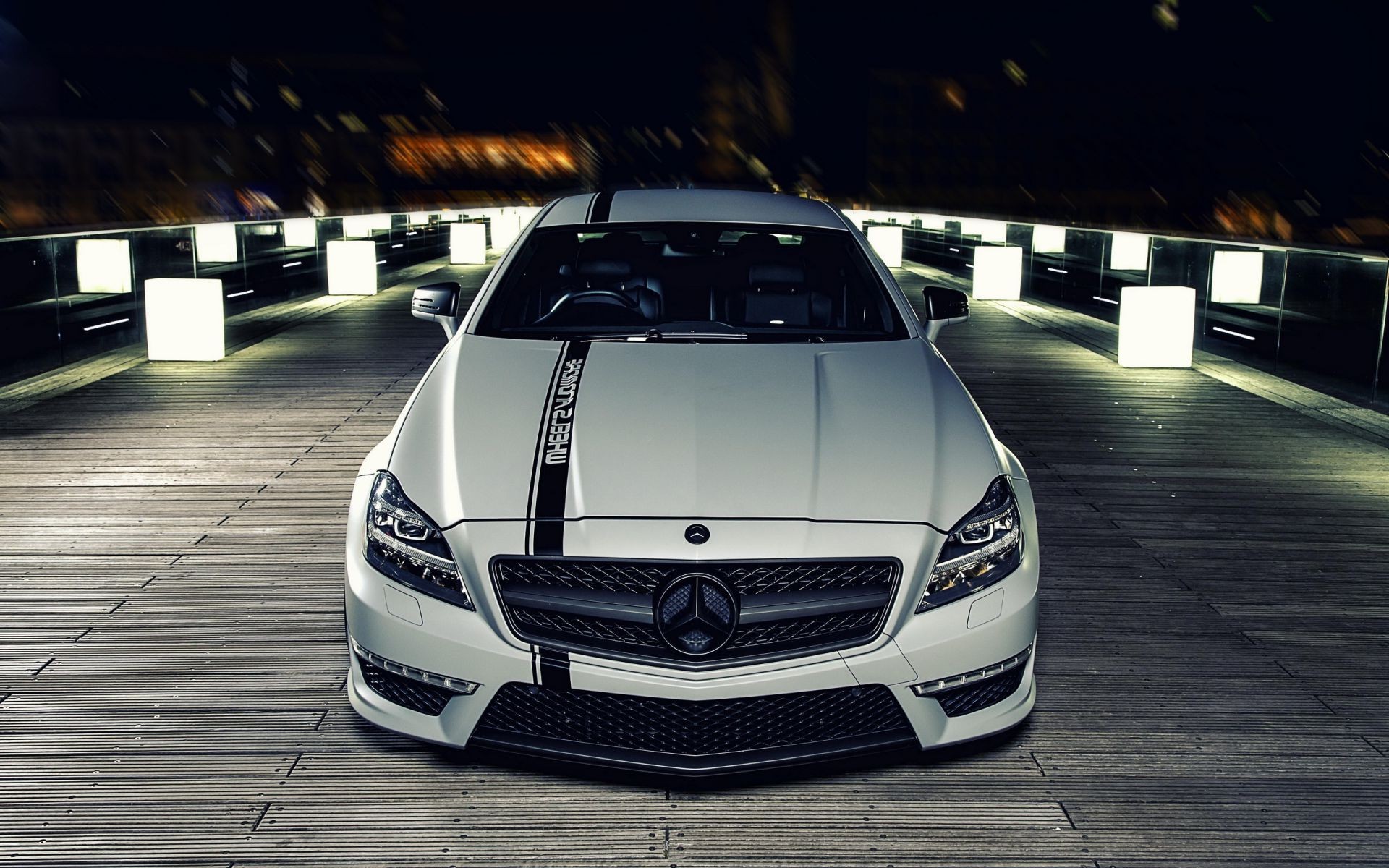 Carro esportivo poderoso com faróis laranja em fundo escuro
