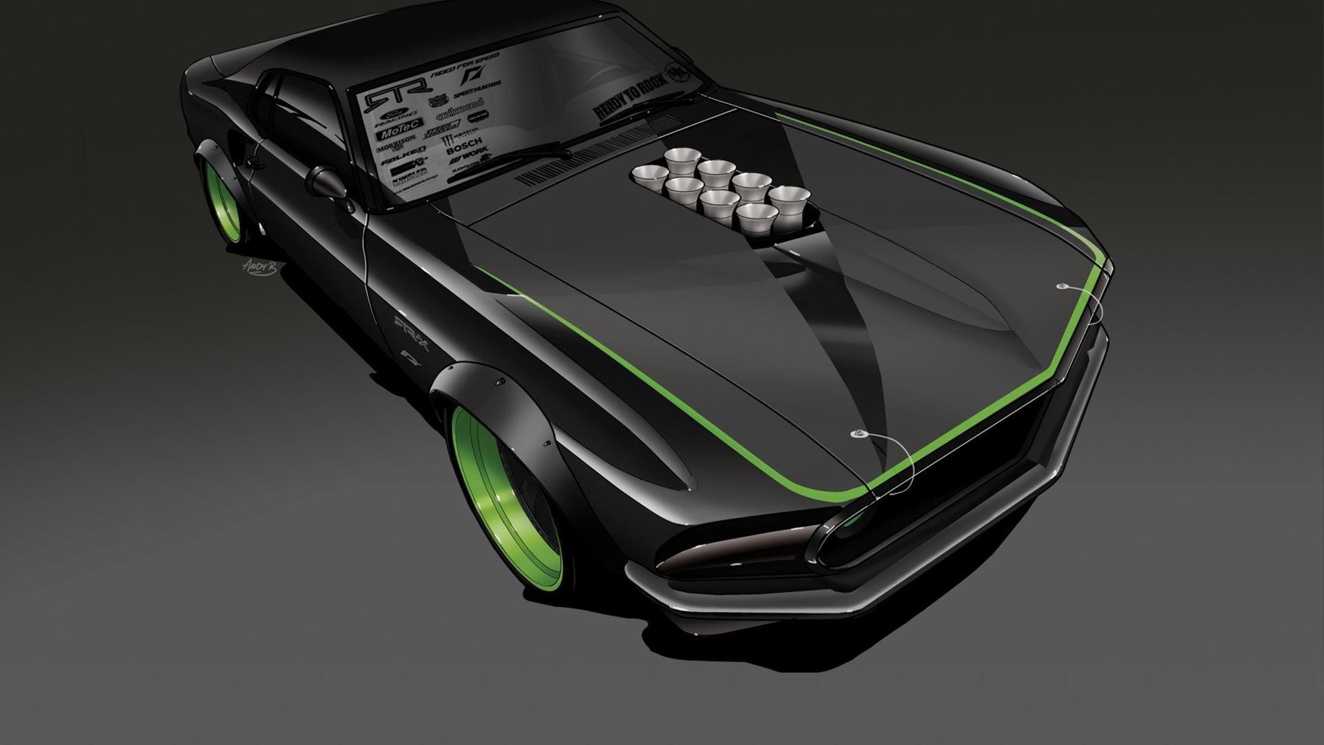 Carro escarlate brilhante polido contra um fundo de concreto cinza