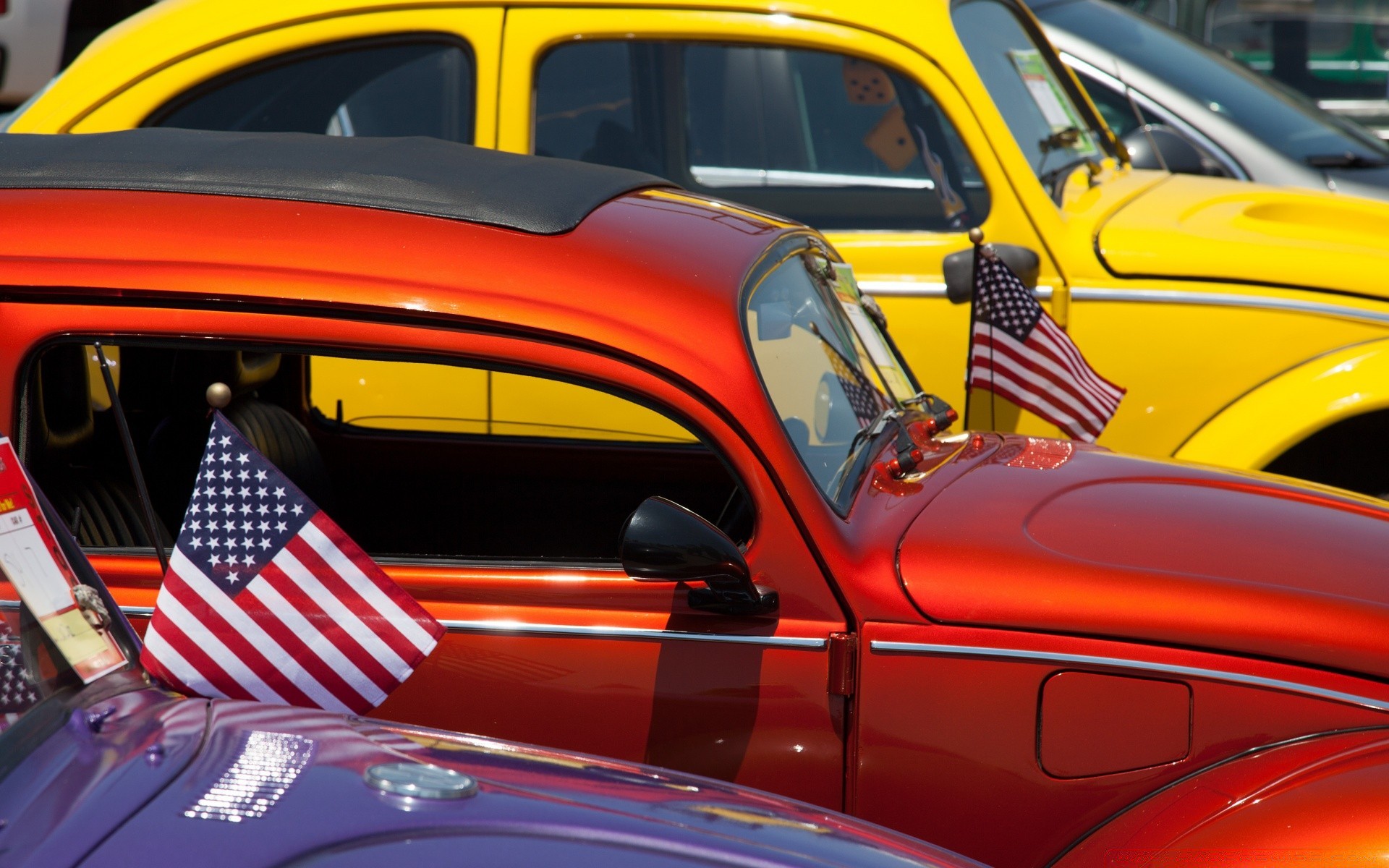 Carros retrô com bandeiras americanas