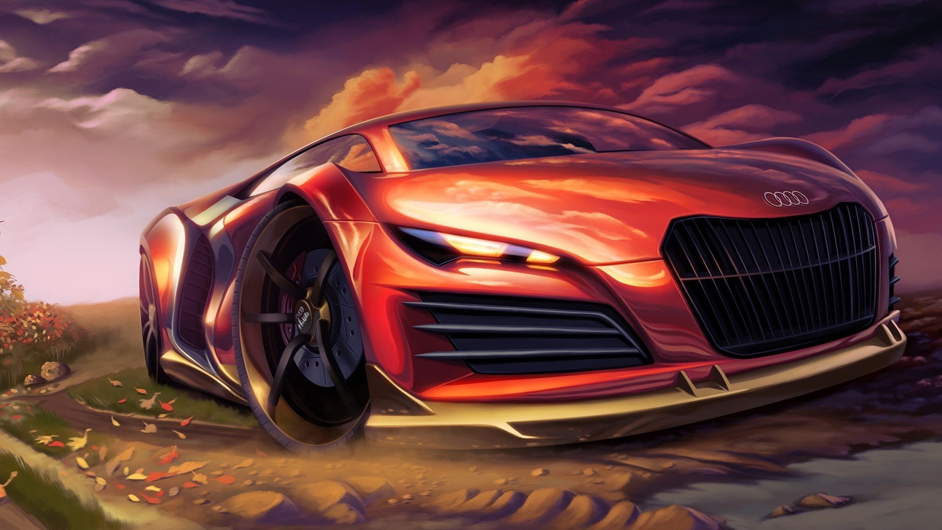 Máquina vermelha desenhada na natureza