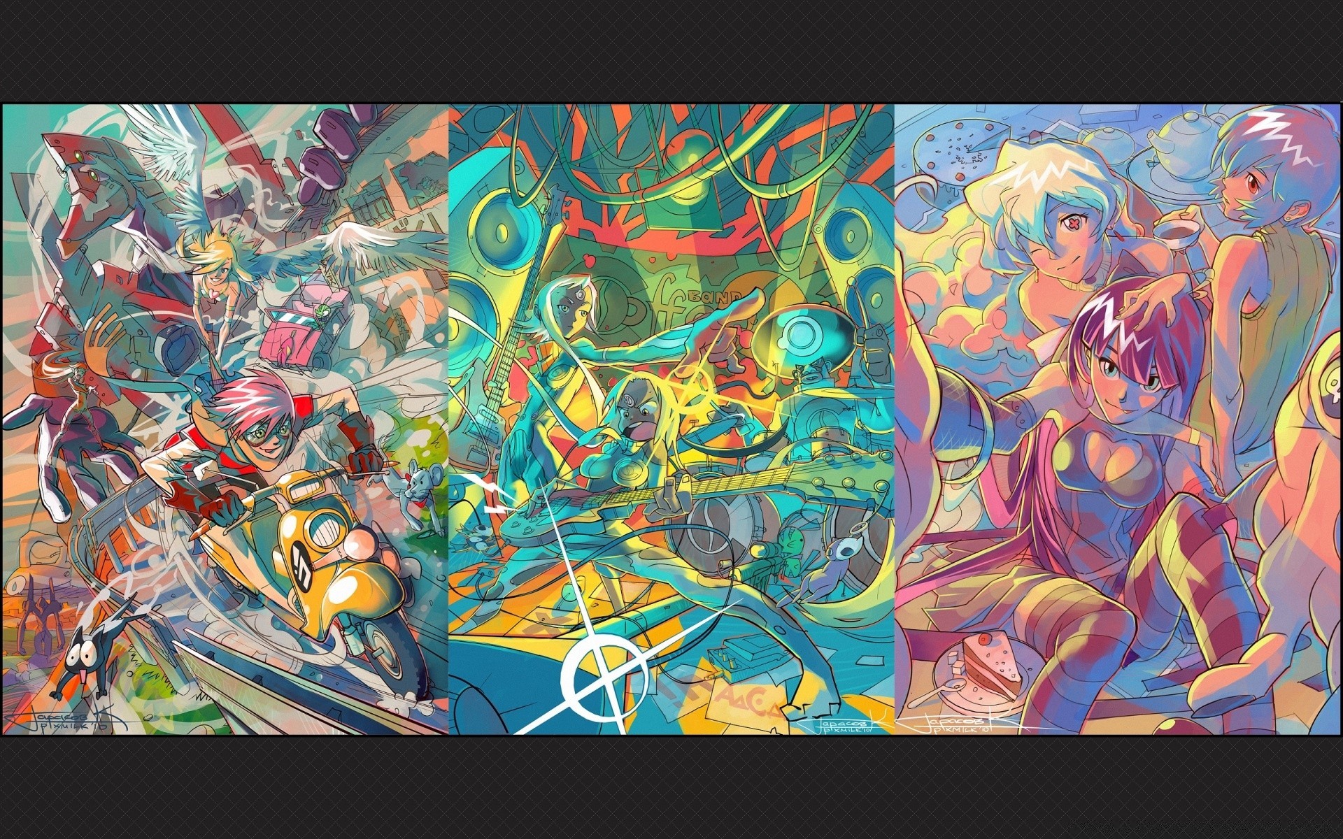 Anime três ilustrações juntos