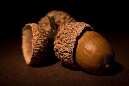 Fotografia Macro ramo de carvalho com bolotas