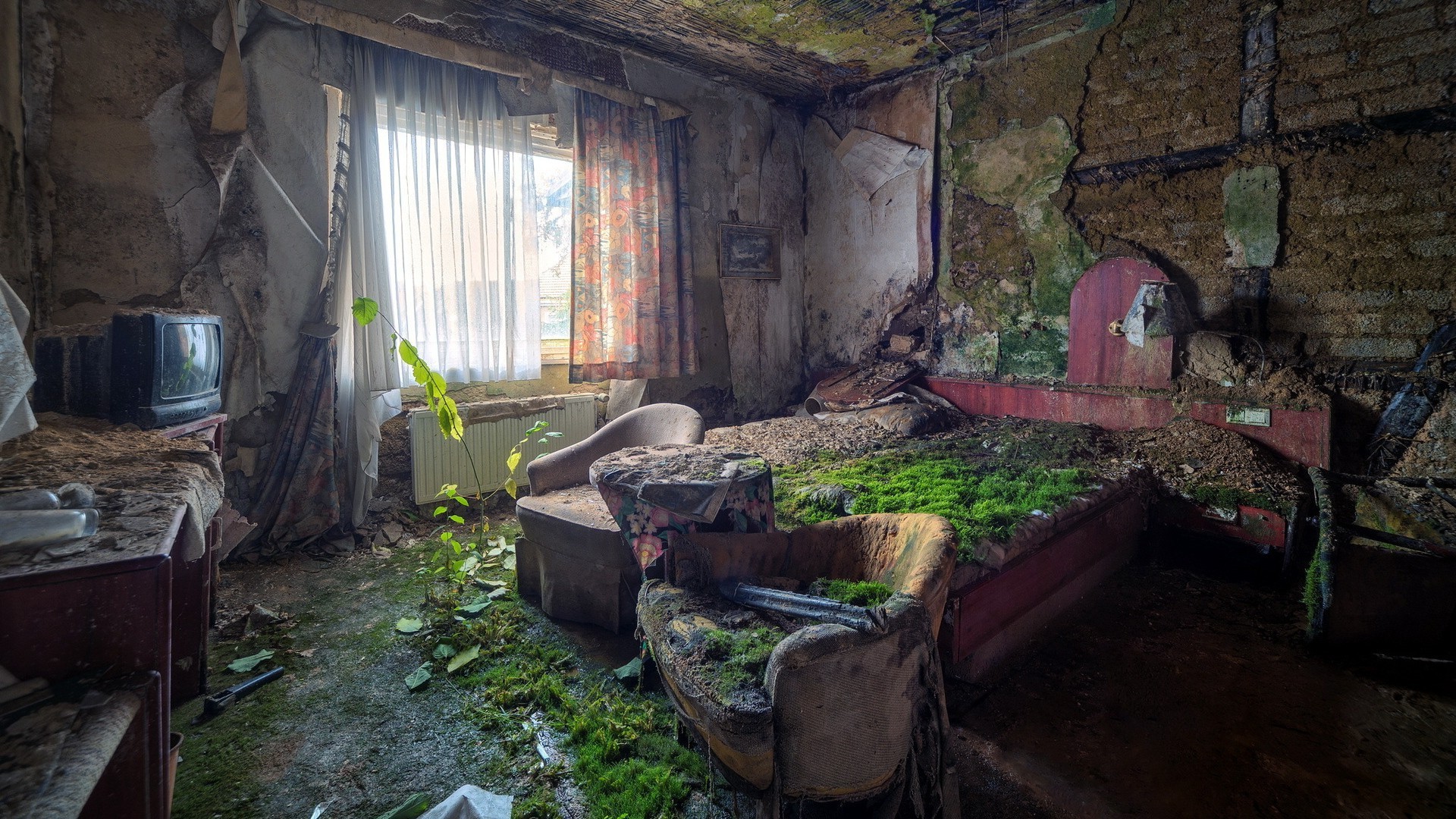 Casa abandonada com cama grande