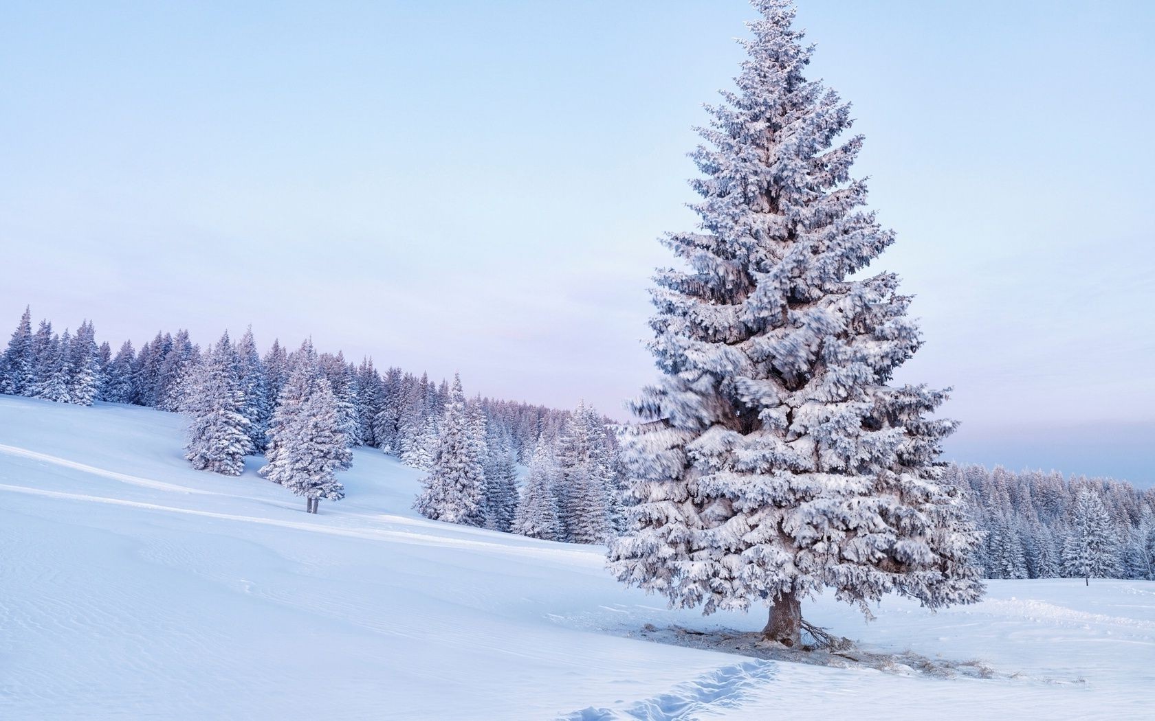 Um caminho entre montes de neve em uma floresta coberta de neve
