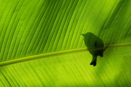 Pássaro sentado em uma folha verde