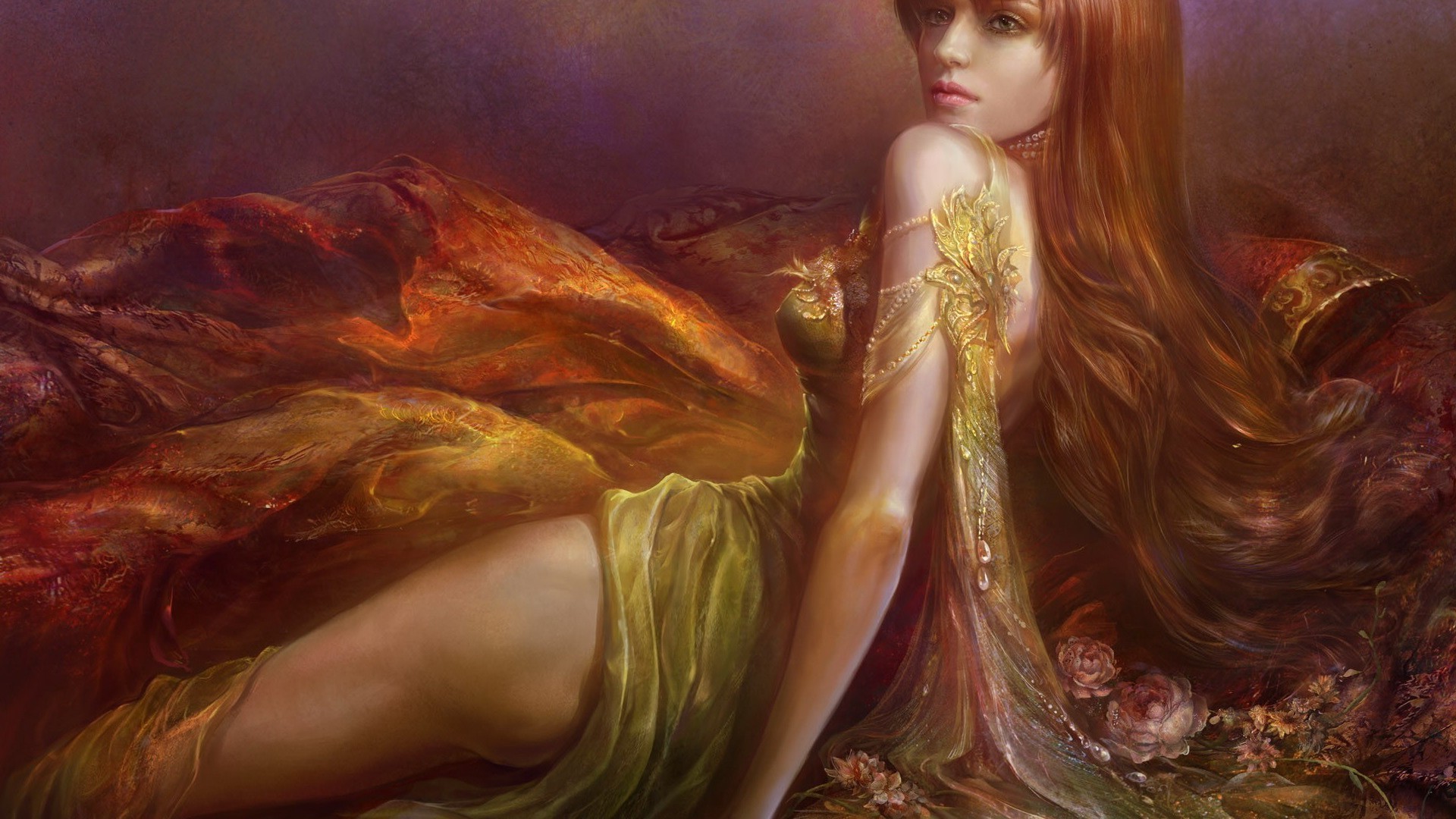 Elf girl em um vestido dourado
