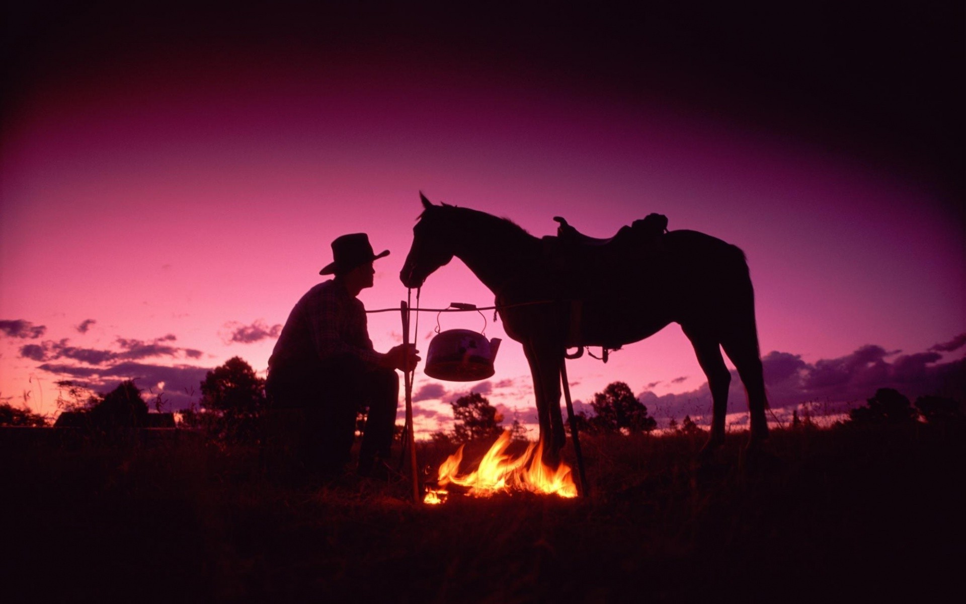 Um grupo de cavalos cavalgando em uma luz brilhante