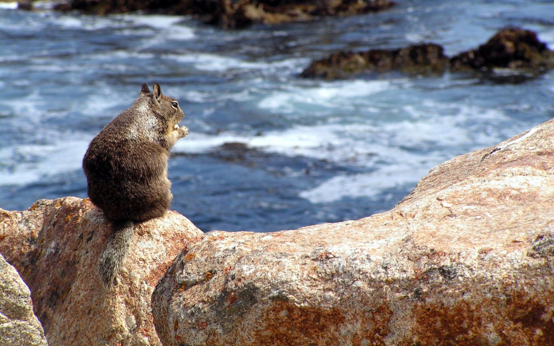 Sozinho sentado em uma rocha à beira-mar Hamster Selvagem