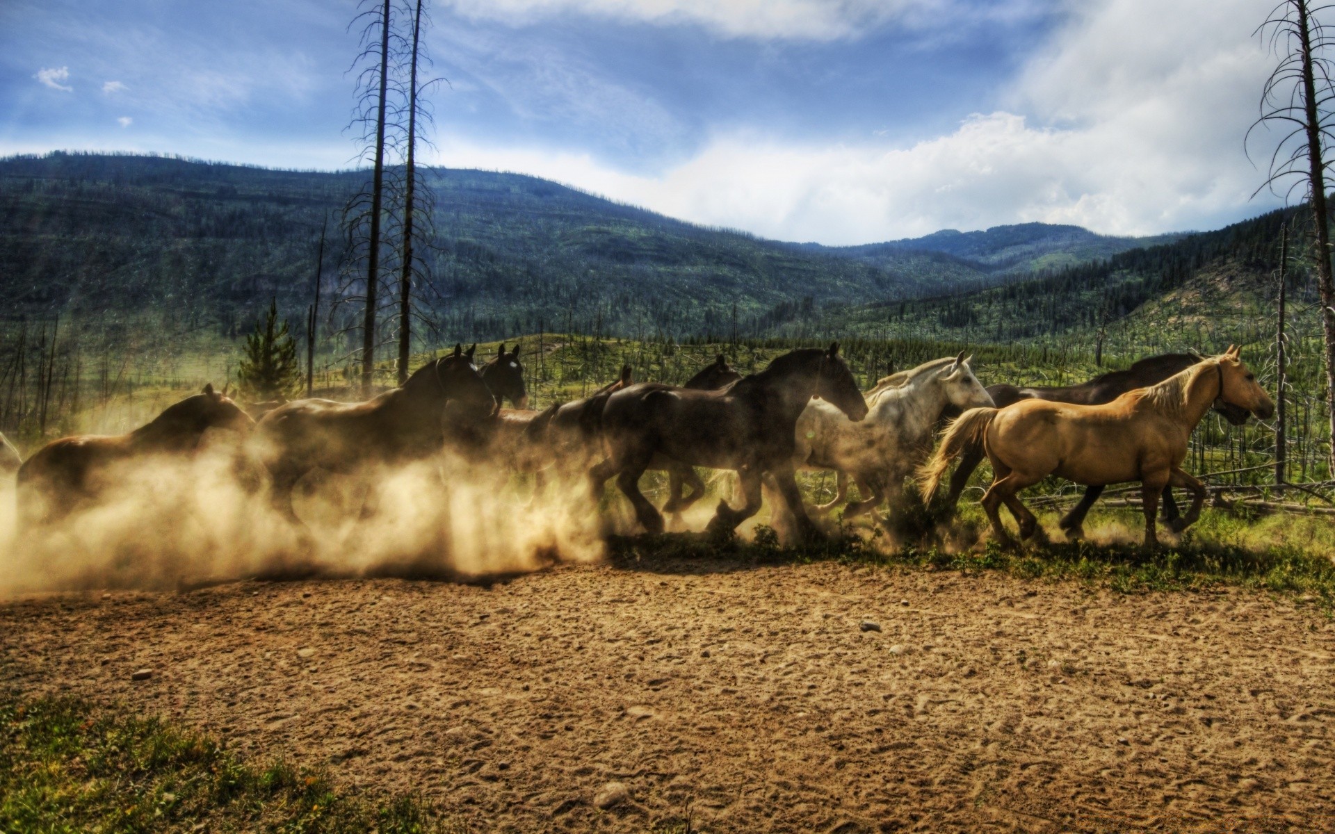 Cavaleiro a cavalo à luz do pôr-do-sol